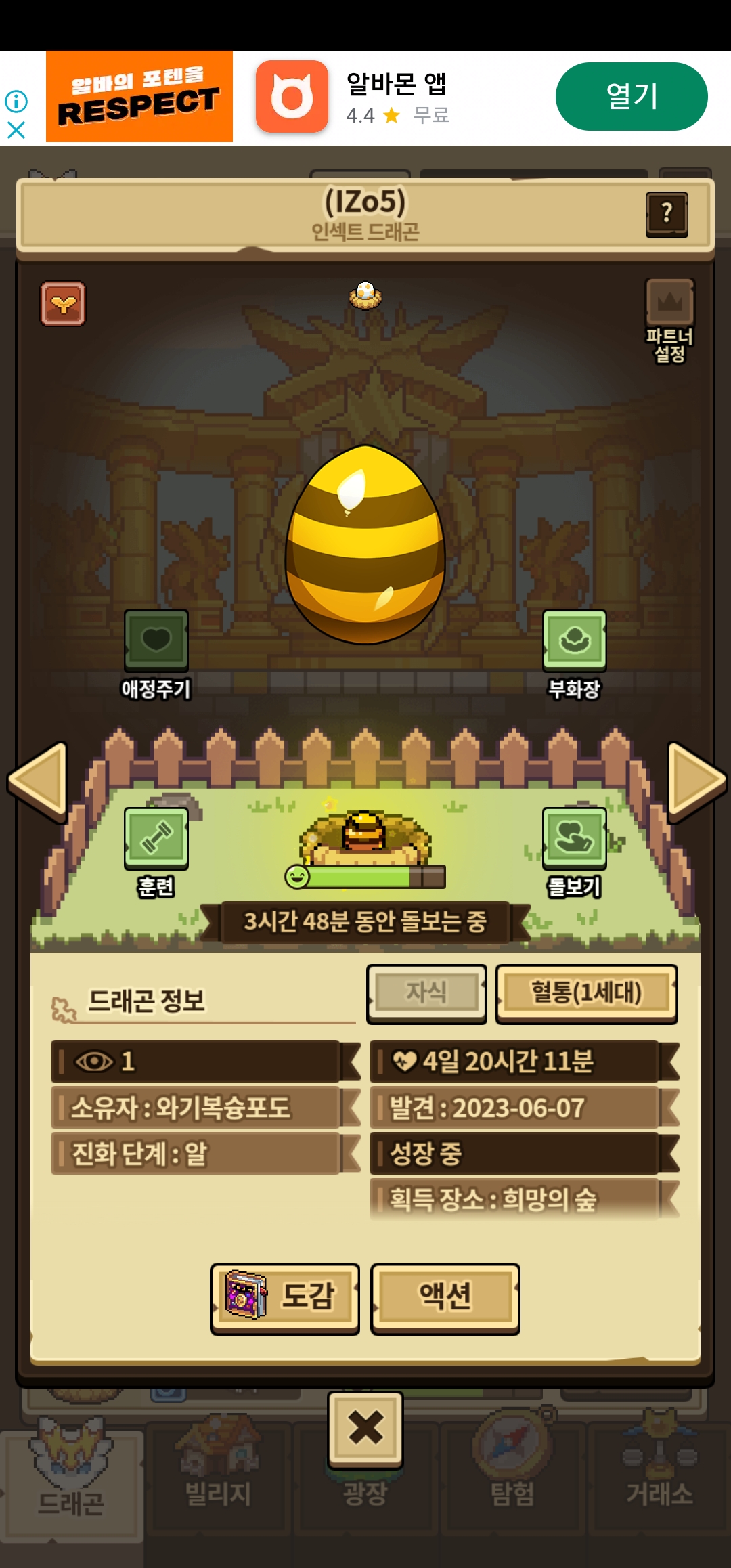 인섹트는 천진난만한, 블루라이트닝알은 성급한입니다.