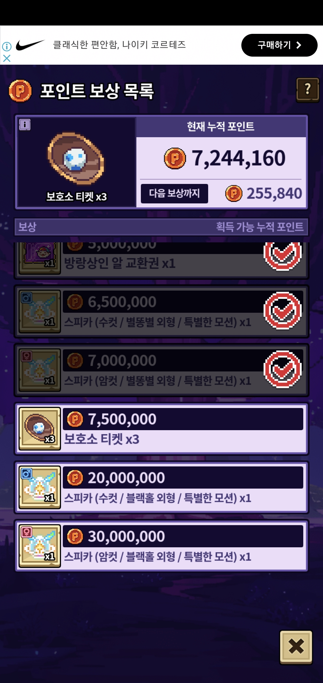 내일까지 하면 보호소 티켓까진 될것같네요 ㅠㅠ 블랙홀 특수 모션 이쁘던데 아쉽게 됐네요..😢