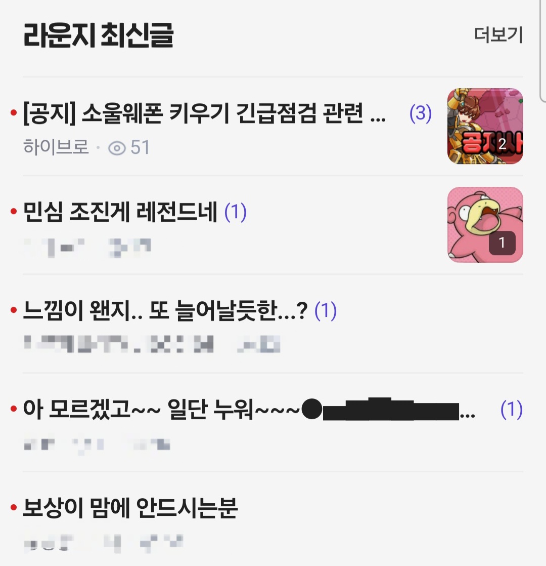 (신작 소울웨폰 키우기 첫째날 커뮤니티 상태)