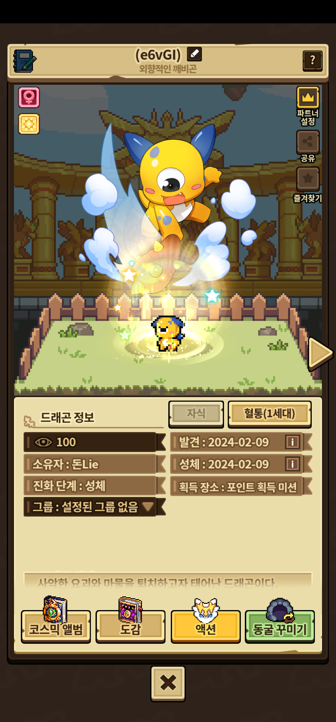 드링크 썼는데 해치, 해츨링 과정없이 냅다 성체가 되서 당황했네요;