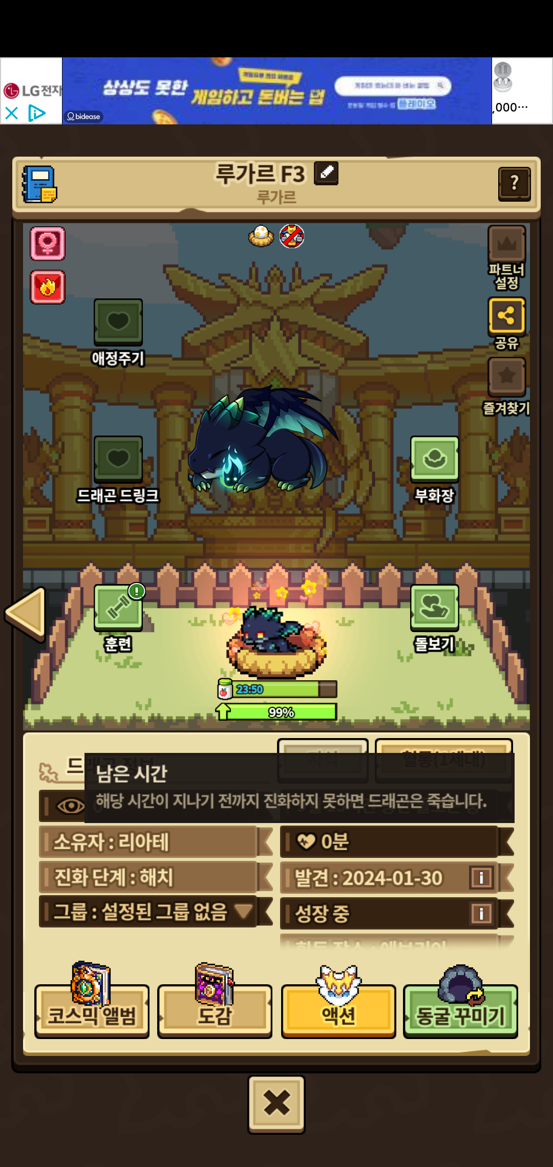 - 3. 해츨링 진화까지 1퍼 남은 상황에