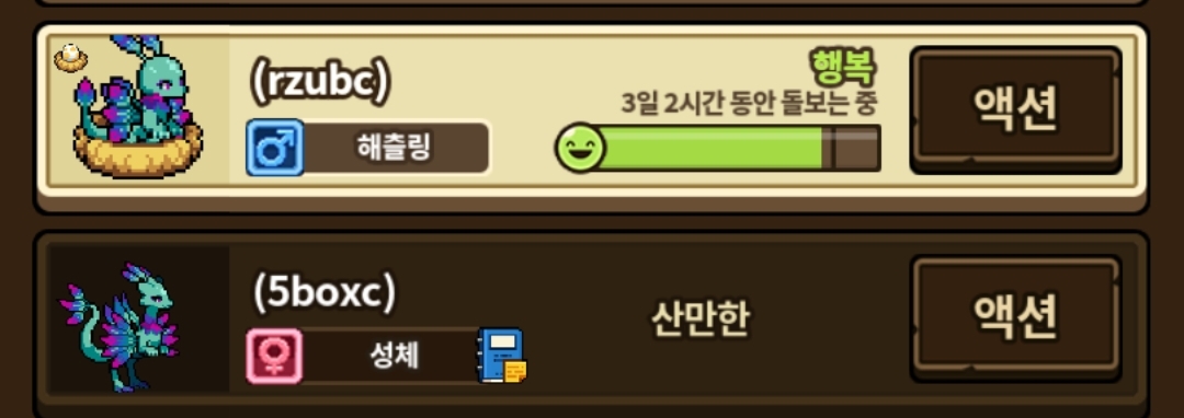 암,수 성별도 잘 나왔고 둘다 루네라 없이 산만이 떠주었습니다 :D