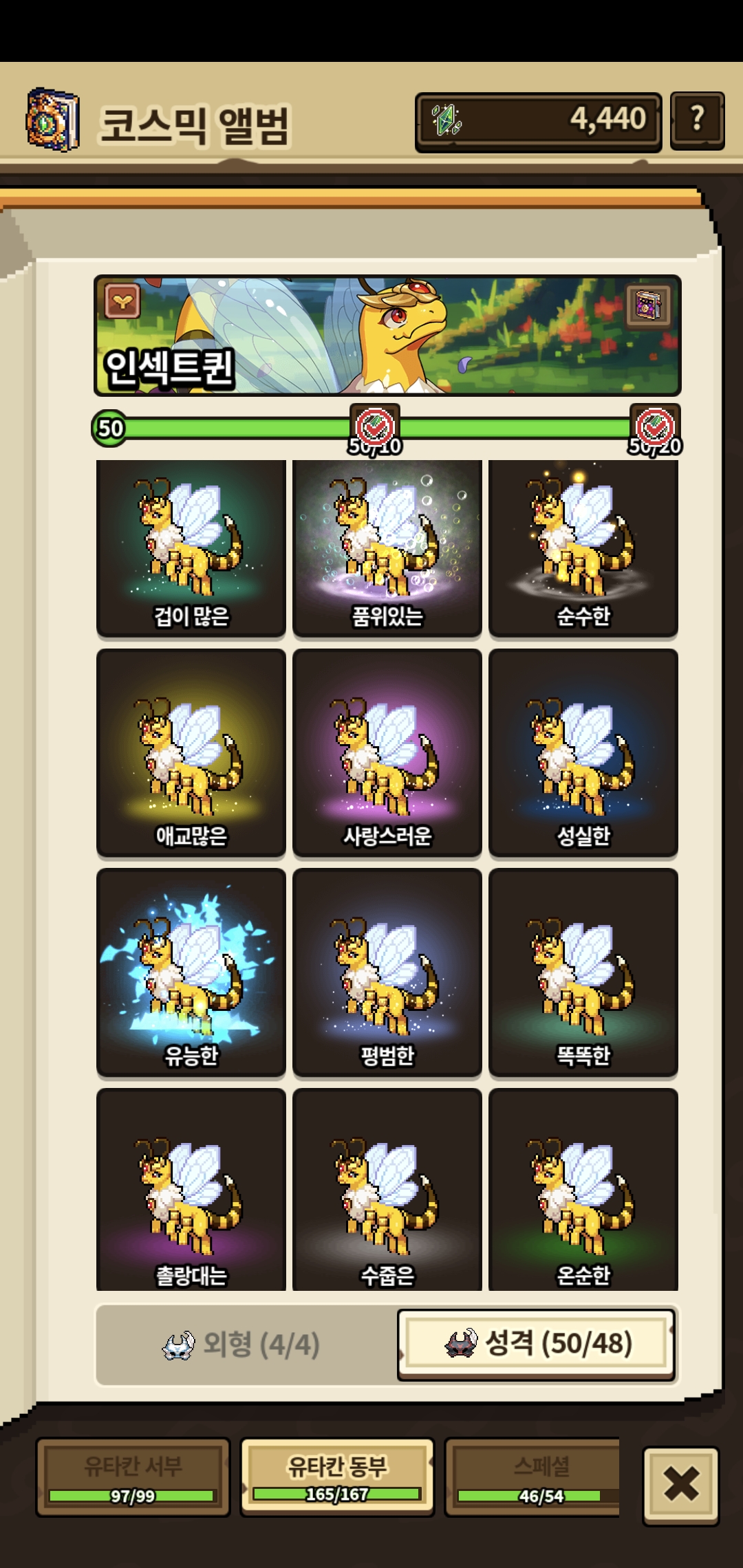 솔직히 오라 모으는것보다 순혈 만드는게 더 힘들었네요… 베리스 특능 써야되는데 일반 인섹트 드래곤 뜰 확률이 33%(체감상 거의 50%였음)로 뜨고, 큐피트나 G네 특능을 써도 확률에 변화가 없더라구요.