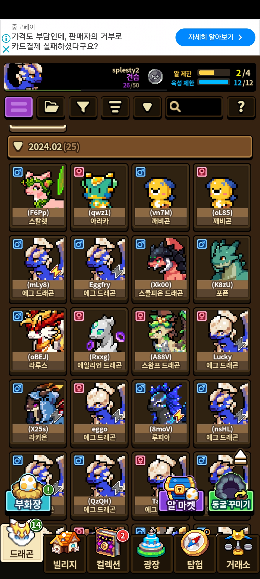 2.보호소 달걀 줍기- 구멍 뚫린 거, 수명 1일 이상 지난 알 가져오기. 구멍은 에그로 즉시 부화
