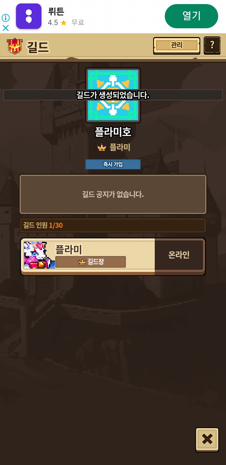 방금전에 만든 길드입니다!