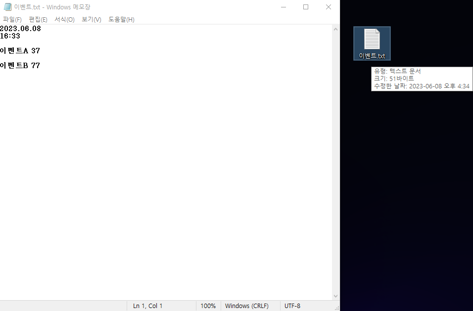 당첨 숫자는 16시 34분에 미리 준비해 놓은 숫자에요.