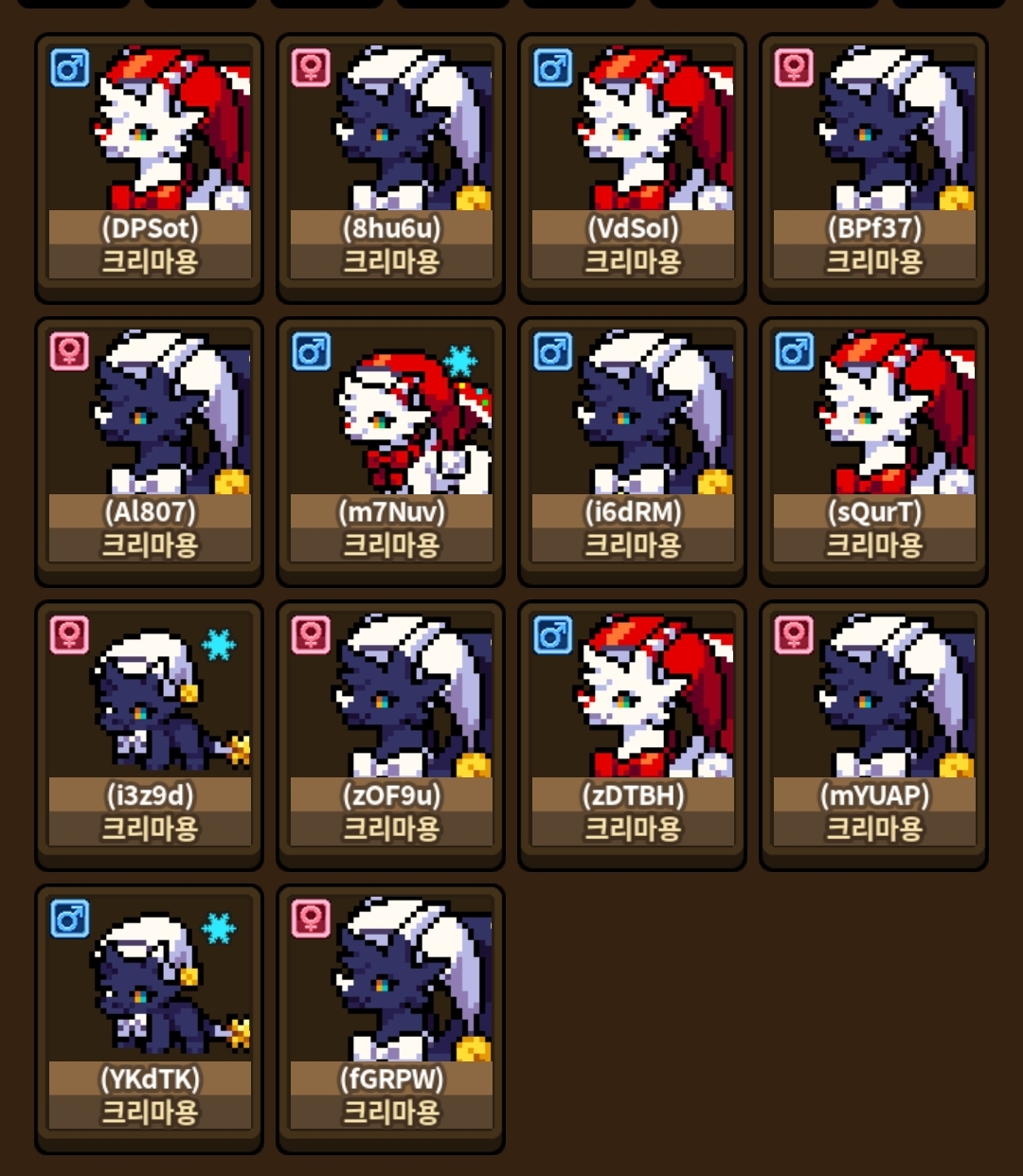 밤 크리마용이 더 많음- 밤 트리마용 9마리 중 2마리수컷- 빛 크리마용 5마리 중 5마리수컷-얼마 없는수컷밤크리를 해치에동결(...)