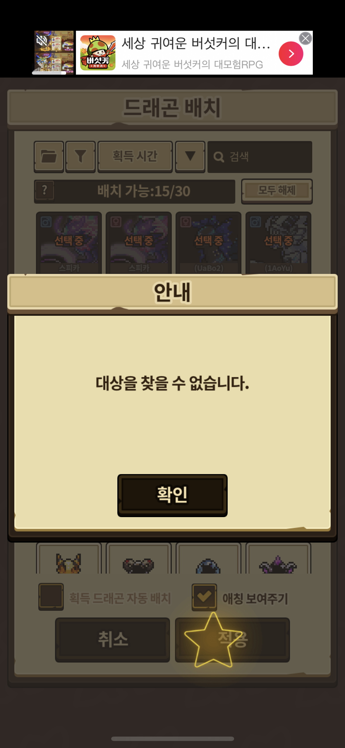 저번부터 이랬는데 빌리지에 배치를 시도하든 빼려고 하든 저런 메세지가 뜨면서 갱신이 안되네요..