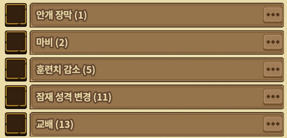 참고로 훈련치 감소는 1마리가 동결이기에 사실상 4마리고 잠재성격변경(루네라)은 4마리 빼고 사용 가능합니다.