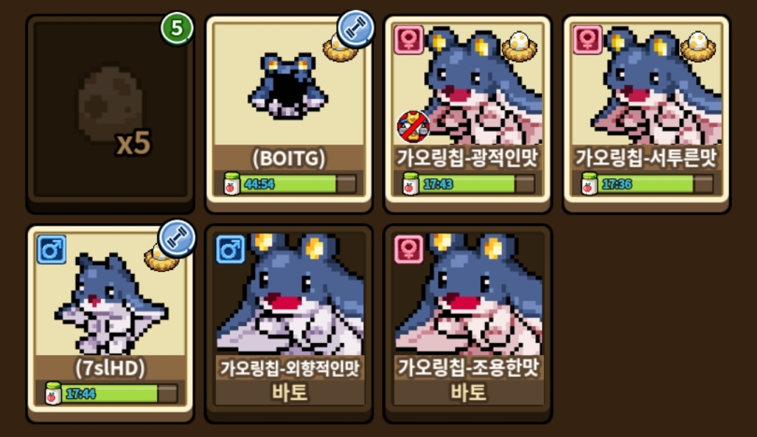 (현재 진행중/완료된 맛: 사납,명랑,광적,서투른,외향,조용)