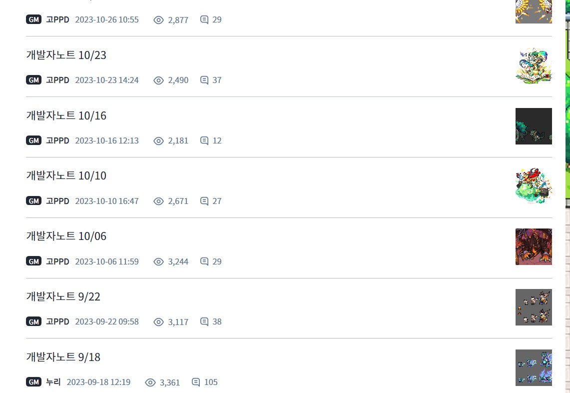 다는 아니고 일부 글의 작성자가 GM 누리로 바뀌었네요.