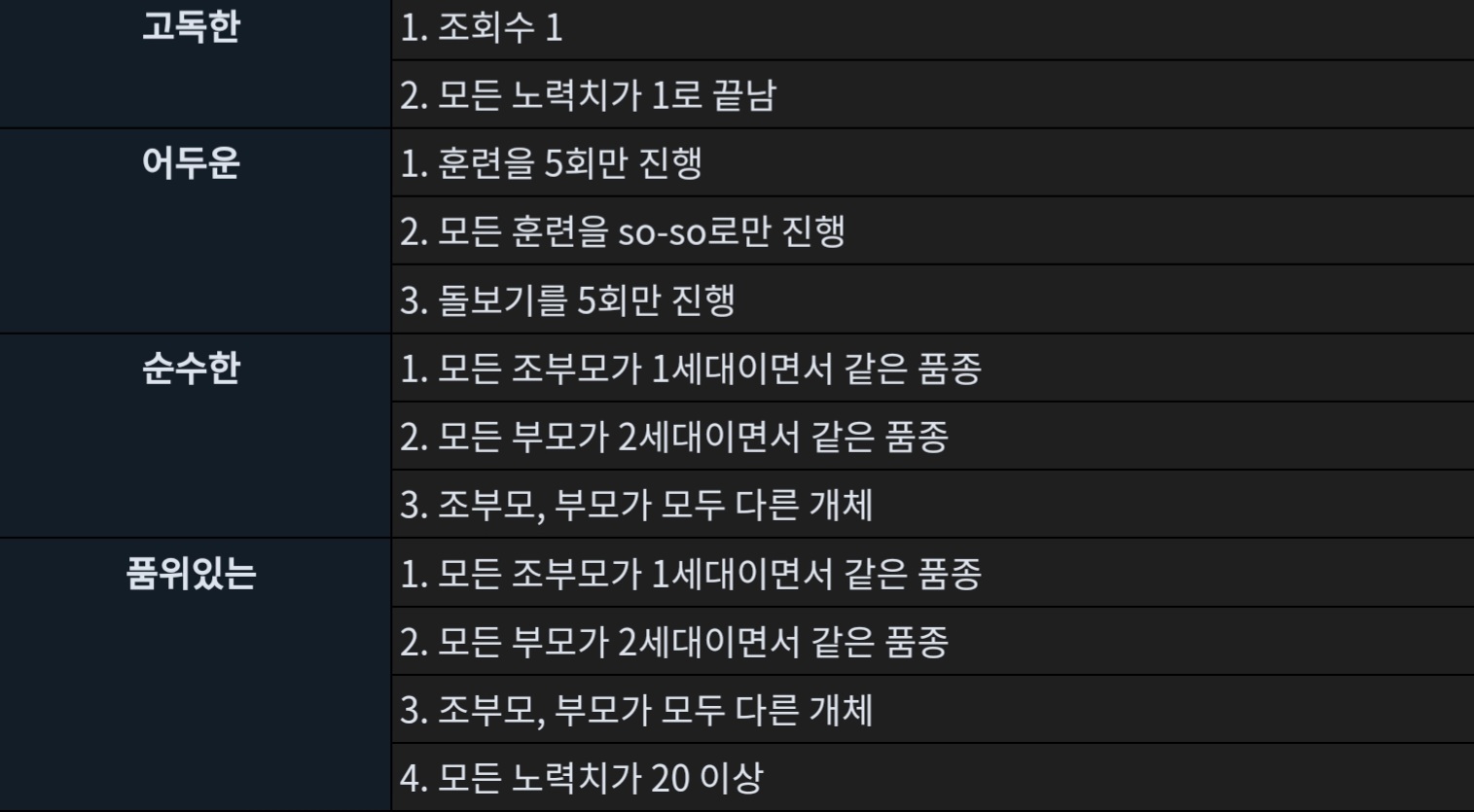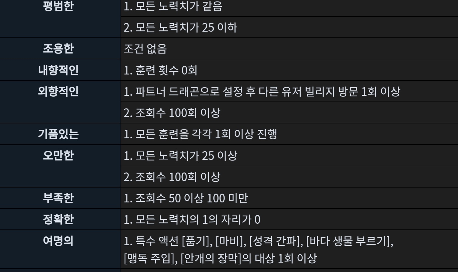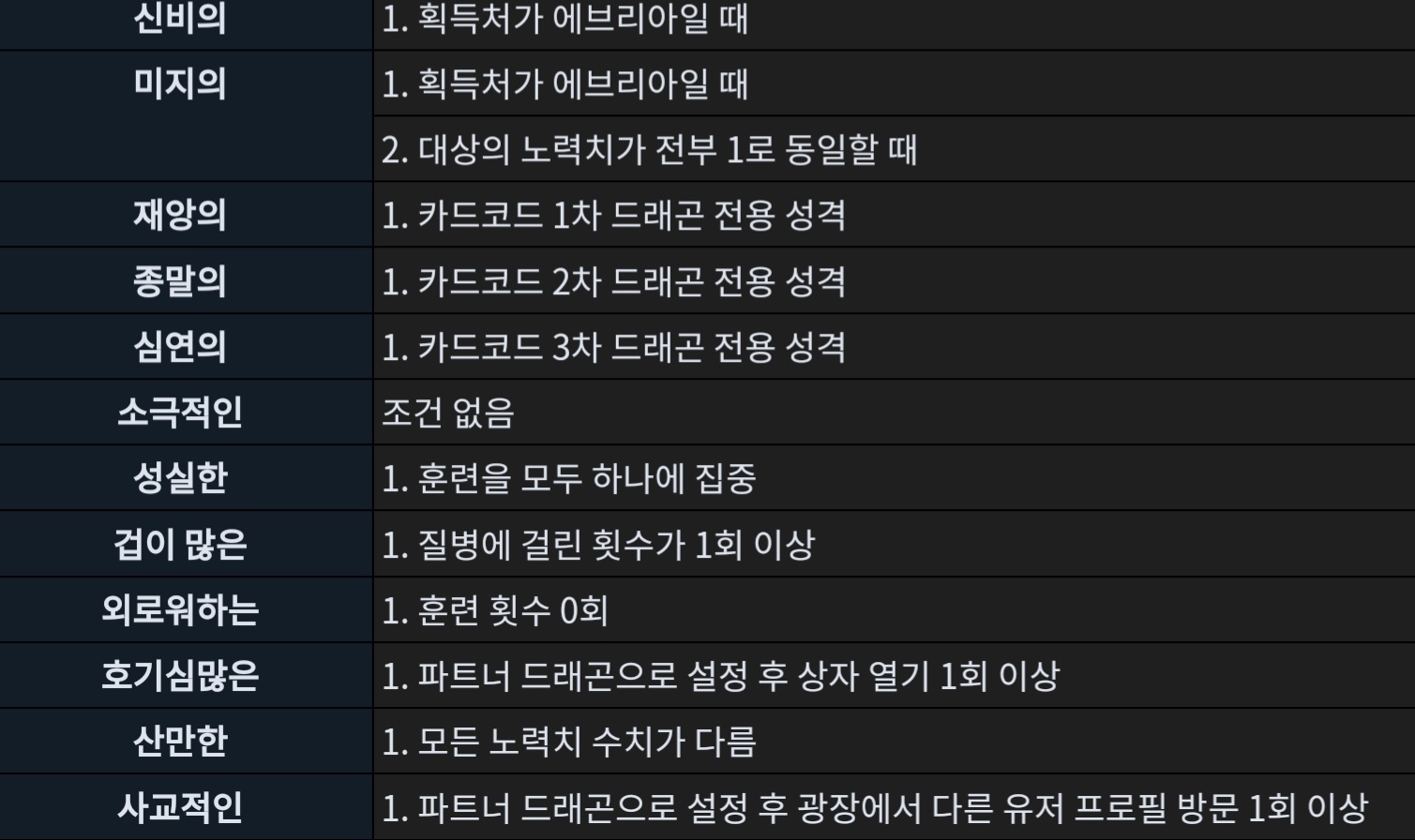 위 조건들은 아직 확정이 아니고, 추후 성격 업데이트 때 변경 후 적용될 수도 있소