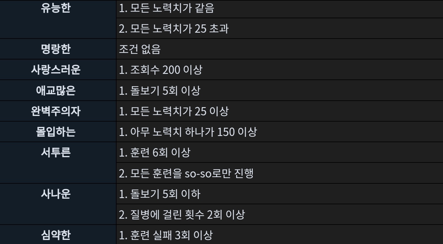 참고로 일반성격은 변경된 조건이 딱히 없기에 따로 찍어두지 않았소.