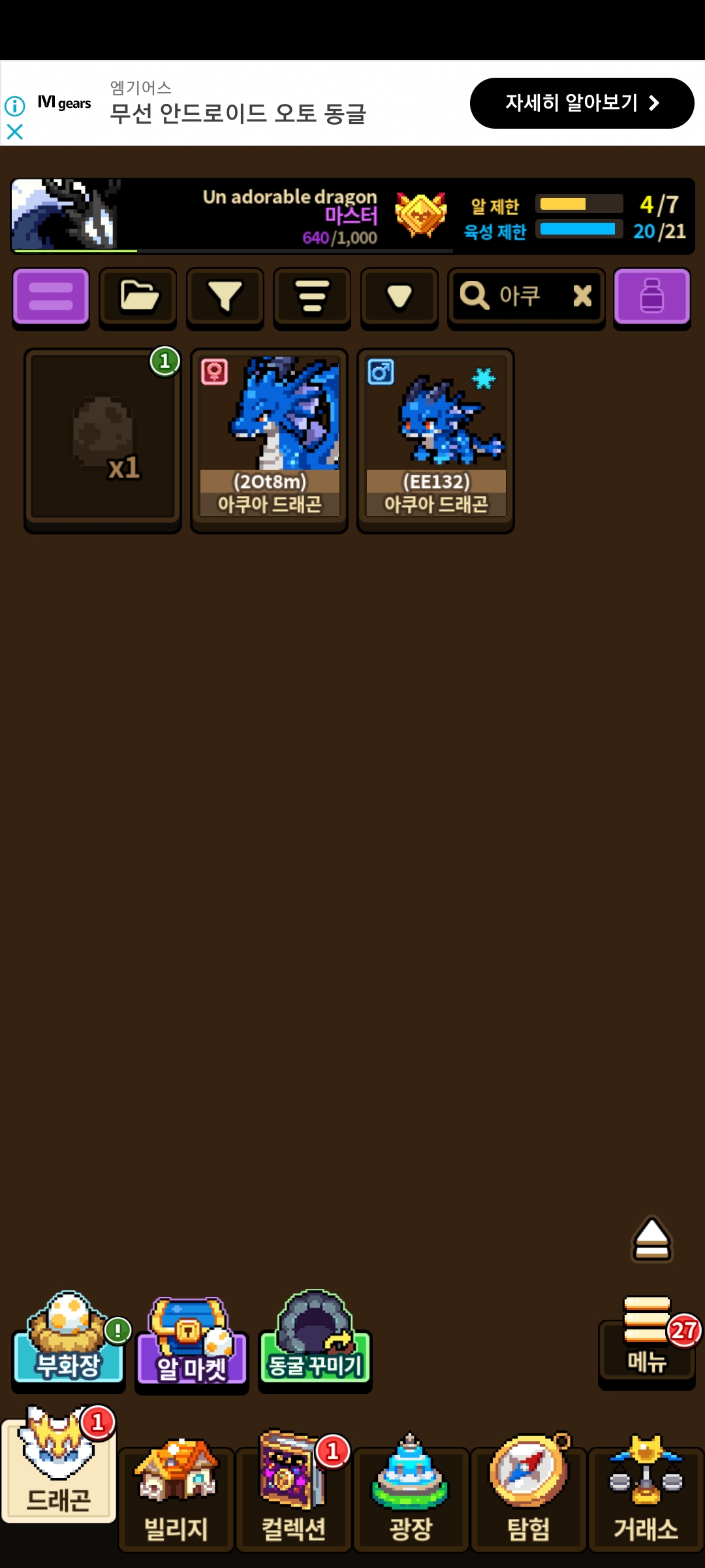 이거 아쿠아 드래곤 새로 키워야 하는 거였..군요..