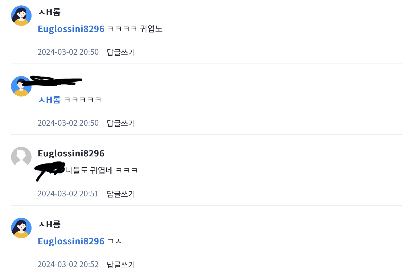 자유게시판 악플러에게 칭찬받으니 기분이 묘하네 ㅅH롬 2024-03-02 03:54 233 9 공유 공유 URL 복사 페이스북 왓츠앱 카카오톡 라인 레딧 닫기 공유 귀엽다 칭찬받음ㅋㅋㅋ 8 0 댓글 9 삭제 이미지첨부 0/3000 등록