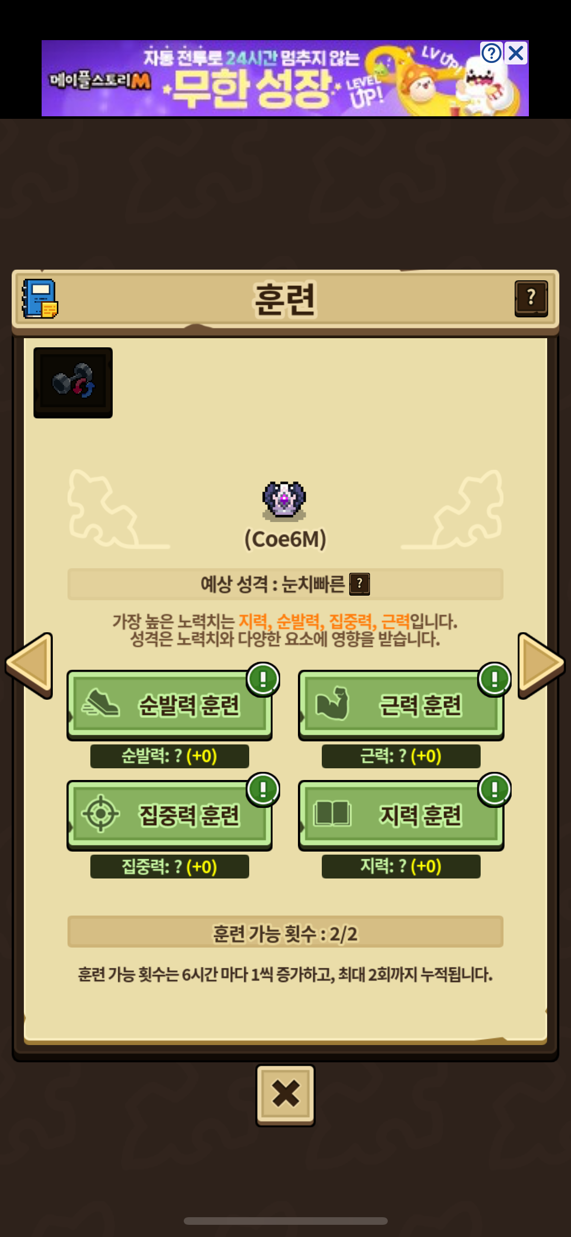 훈련치가 다 똑같다고 나오면 나오는 성격이 있었던 것 같은데..아닌가요..?