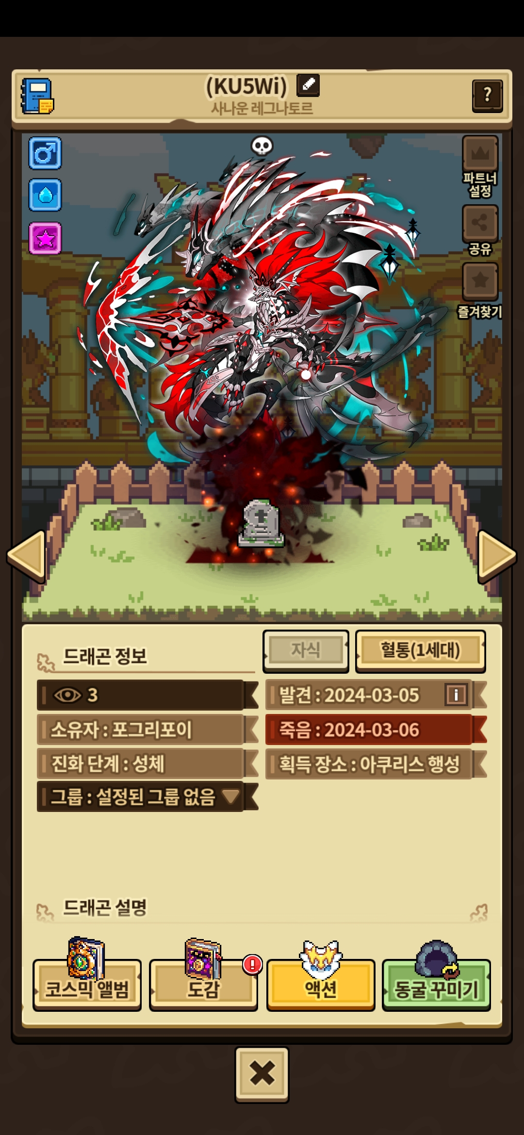 얘 4마리나 떠나보내고 간신히 언데드 성공했는데 왜 외형이 아직도 비석으로 보일까요?