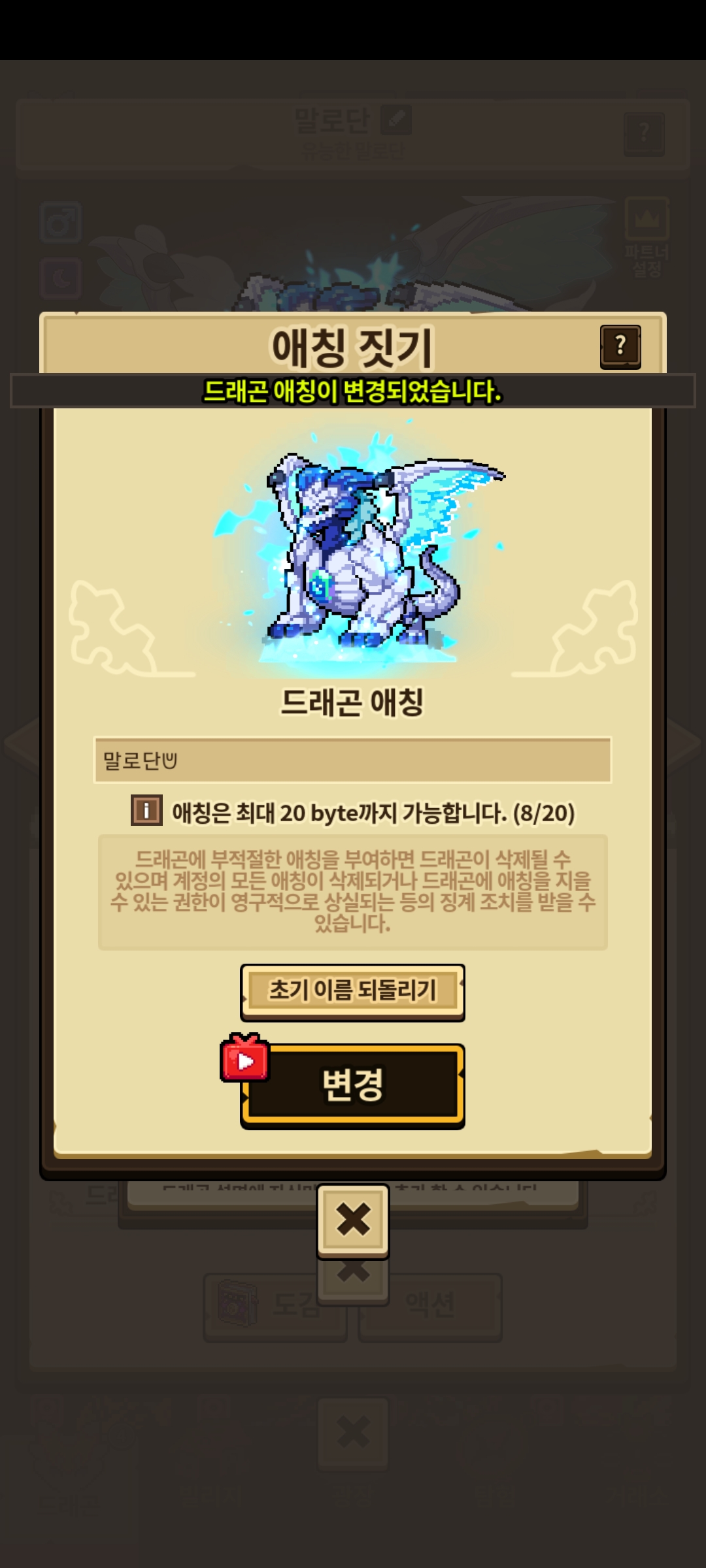 듭컬을 하다보면 내 드래곤에게 예쁜 애칭을 지어주고 싶은 마음이 든다.