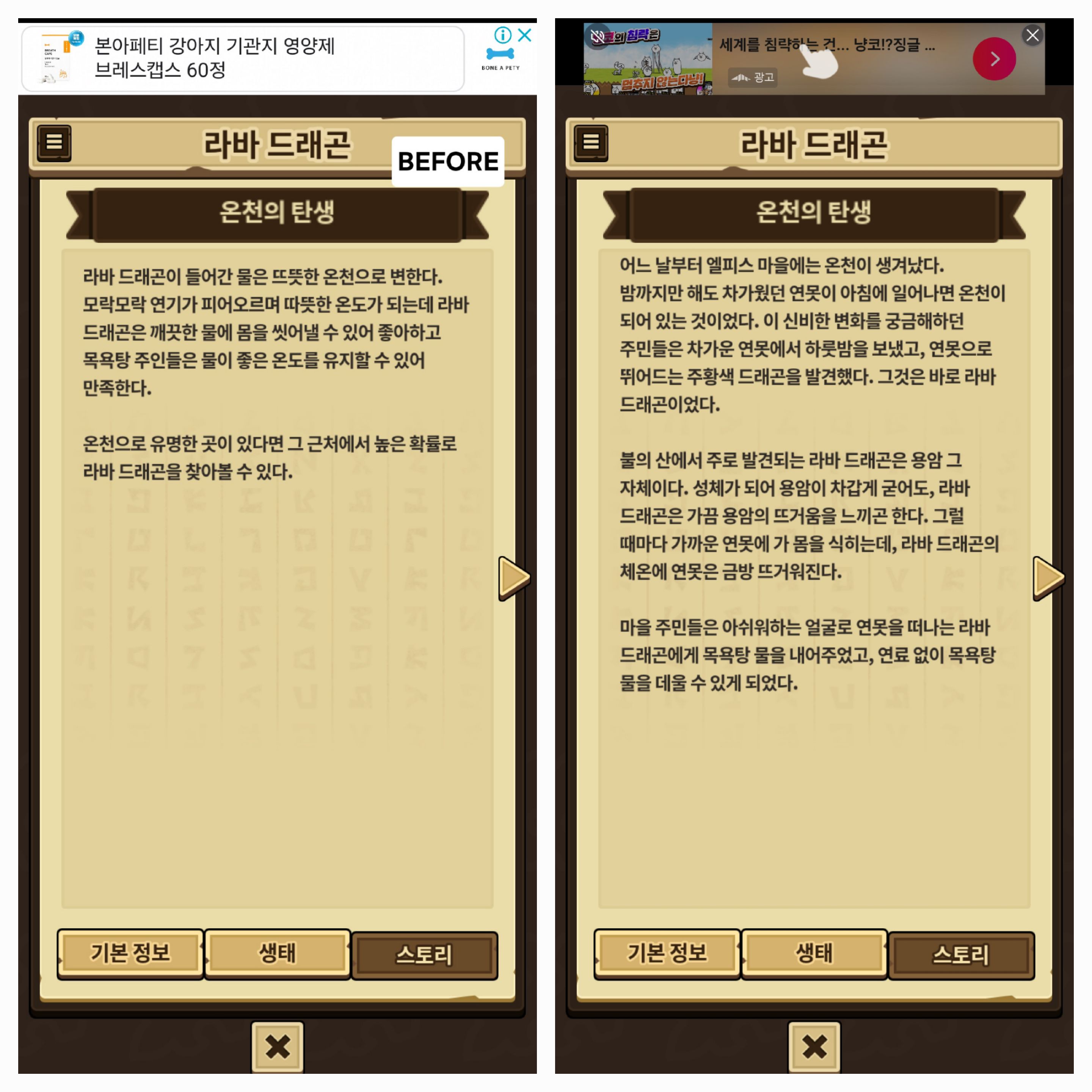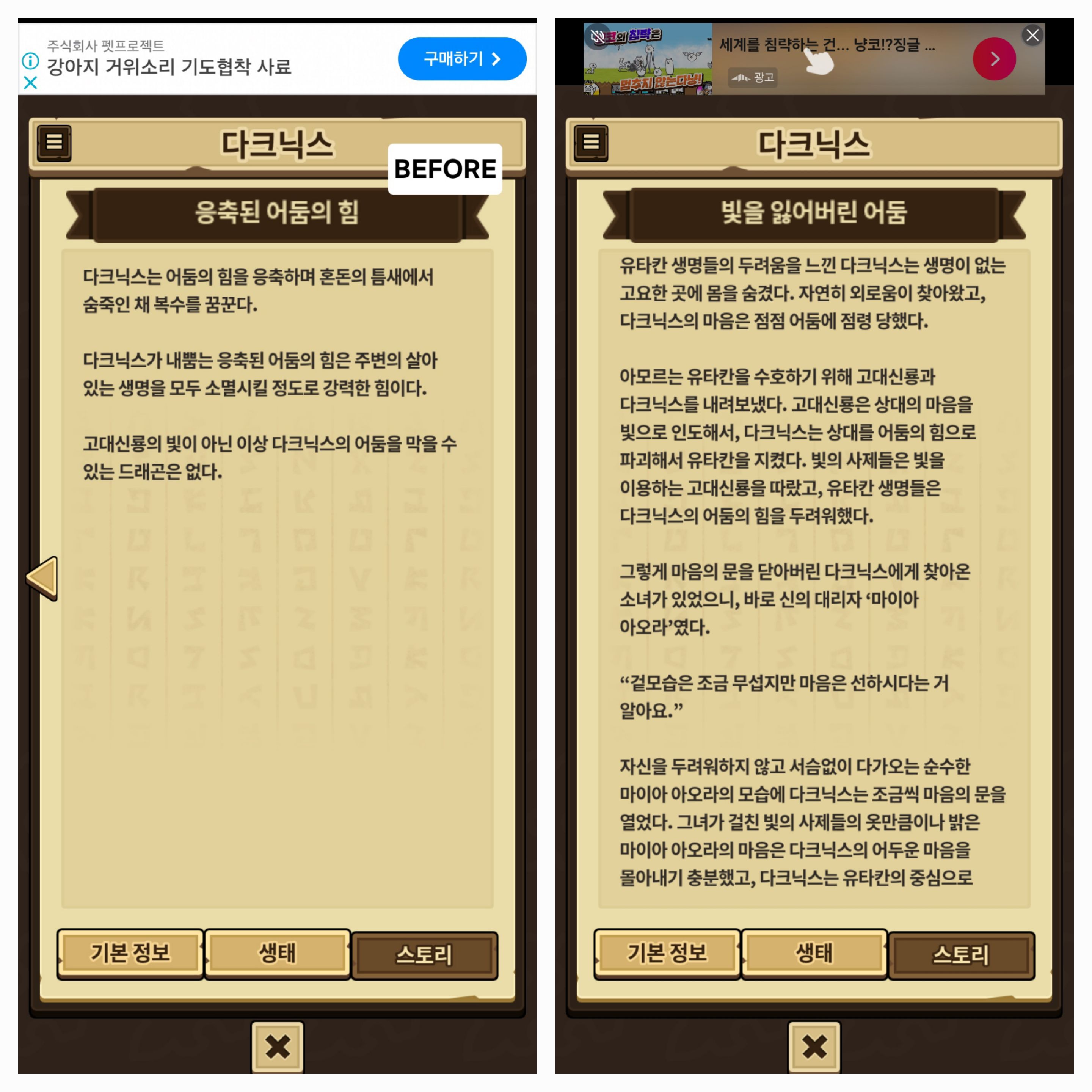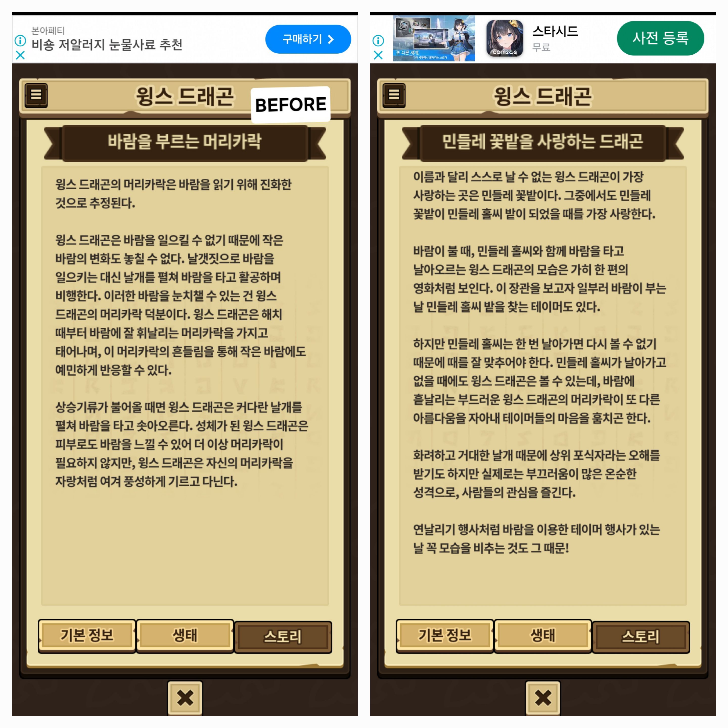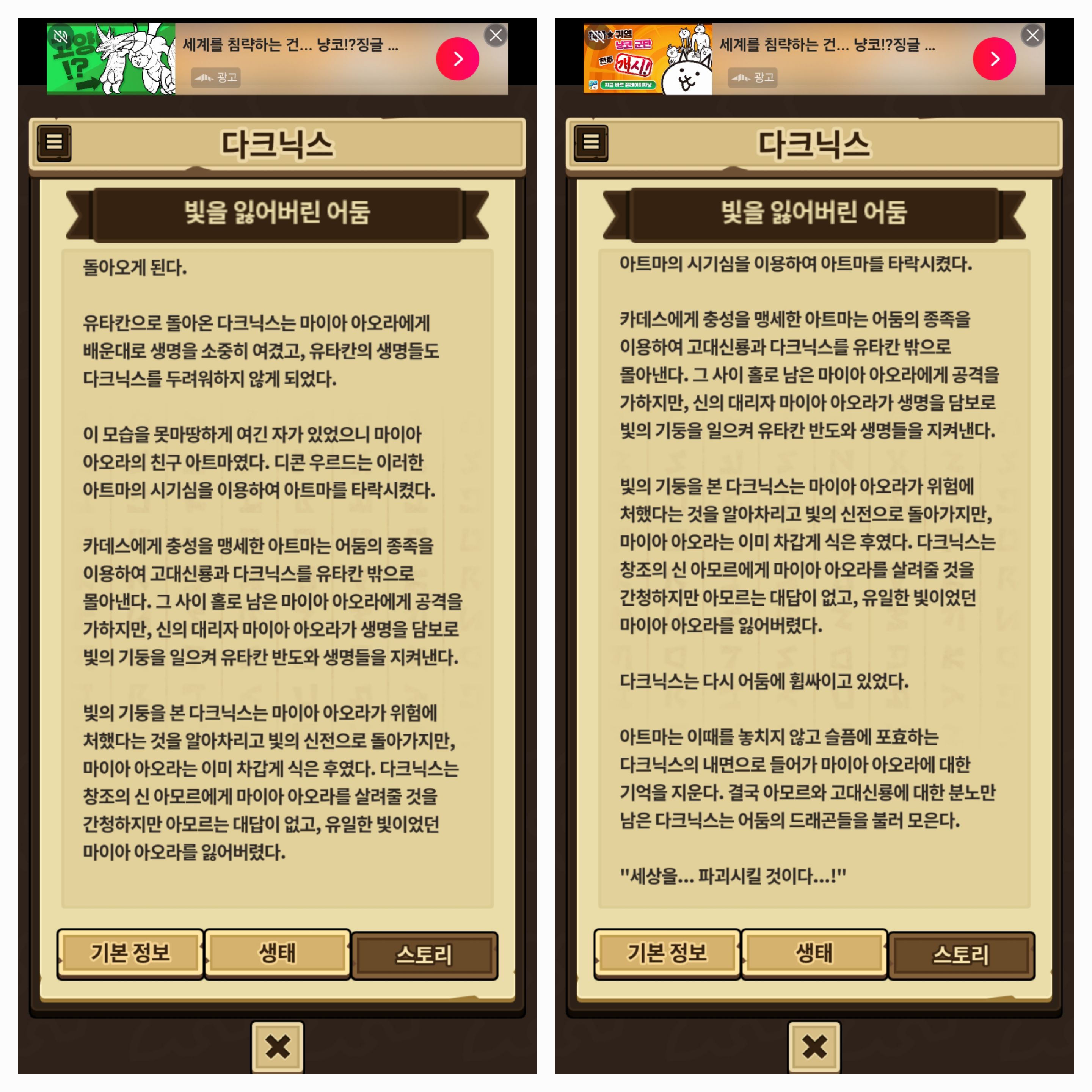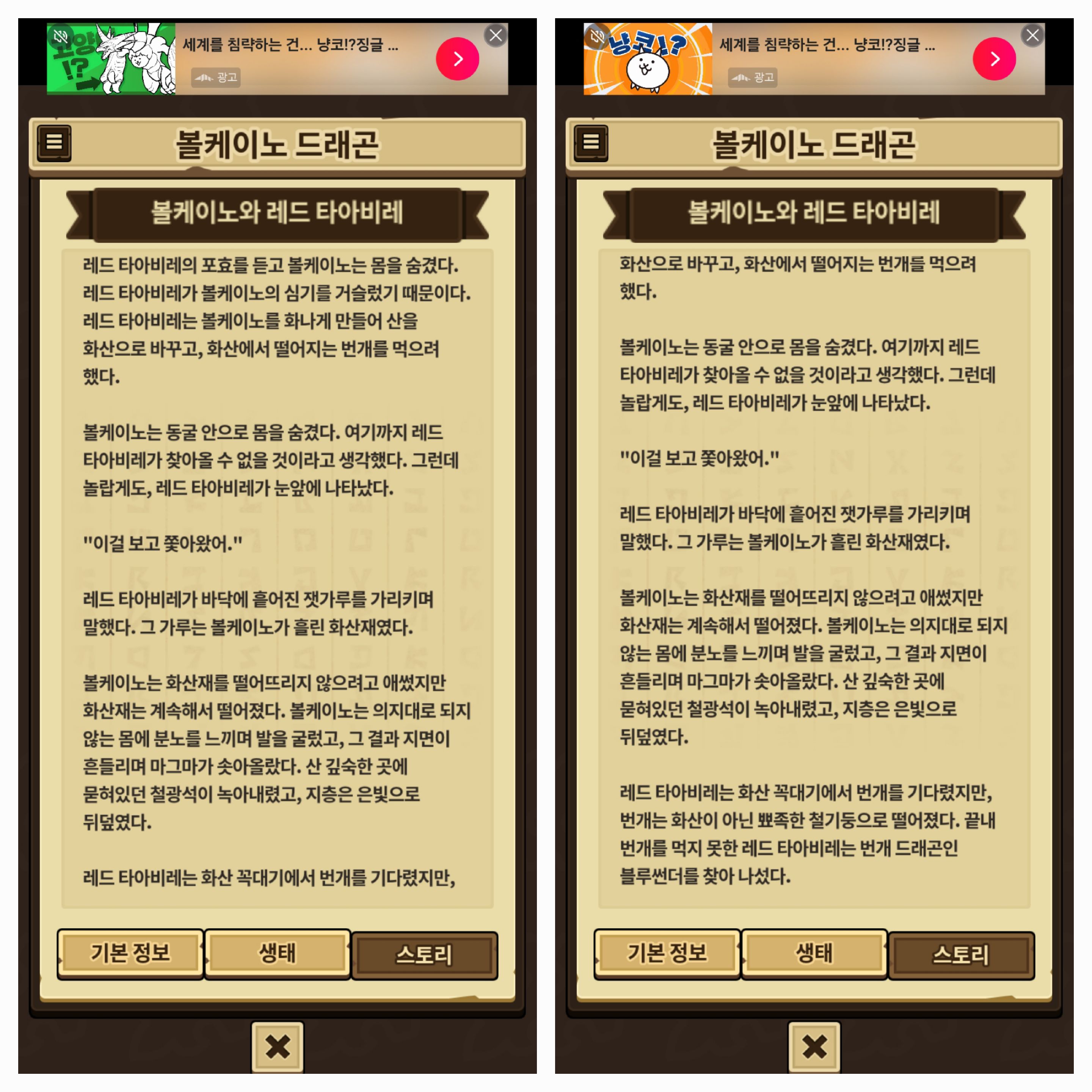 윙스 머드 라바 볼케이노 다크닉스 카라선 베가본드 의 스토리 수정 전후 비교 사진