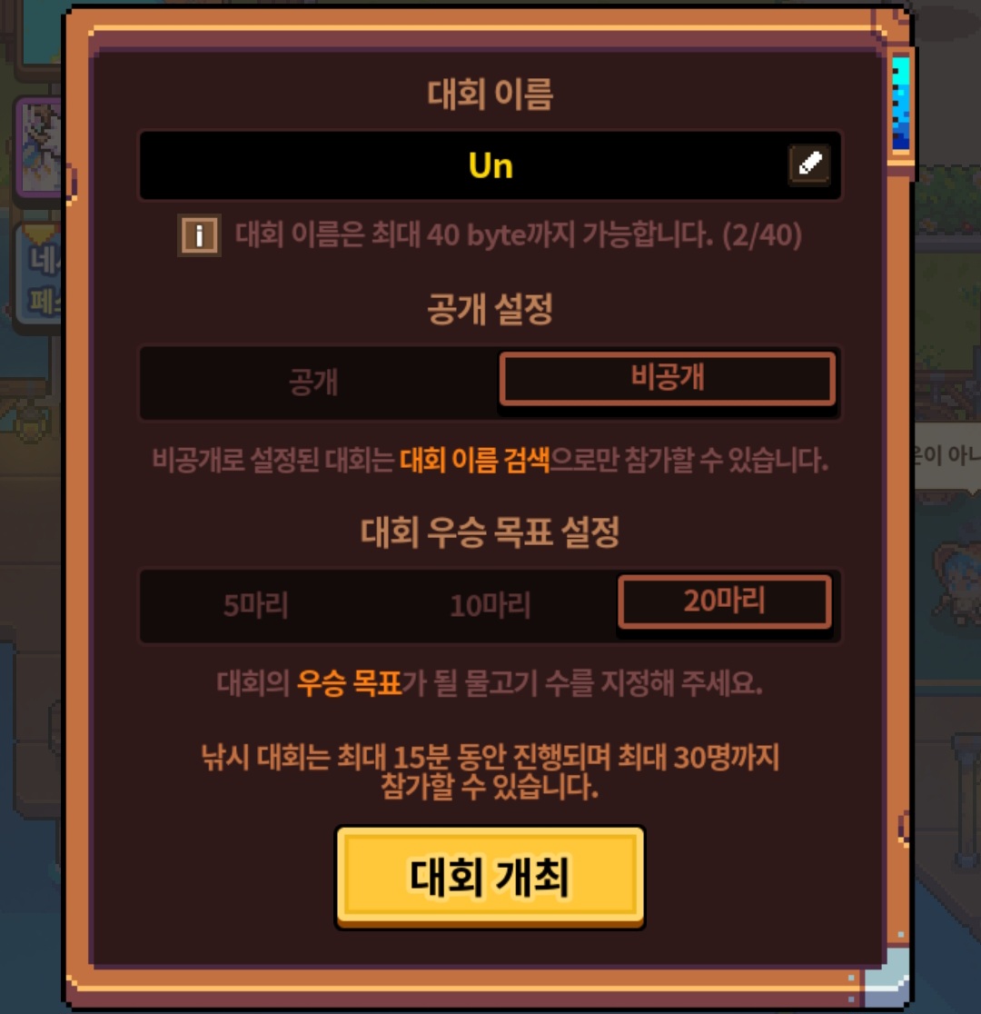 ㄴ 윗글에서 보셨듯이 낚시대회를 이미 열었었긴 한데 실수로 공개방으로 해버려서 커뮤니티를 안 보신 분들도 하시면서 1등도 일본분이 되셨길래 일단 연락 드리고 다시 열게 됬습니다,,