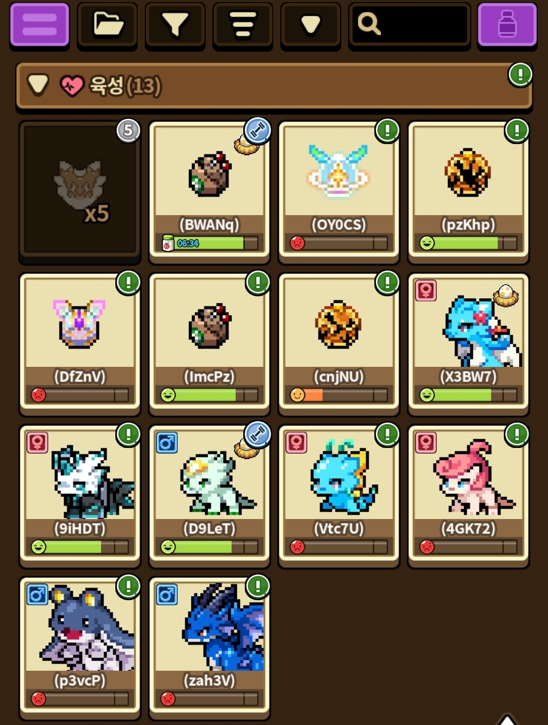 육성칸은 남아 도는데.. 알칸이 없습니다 흑흑