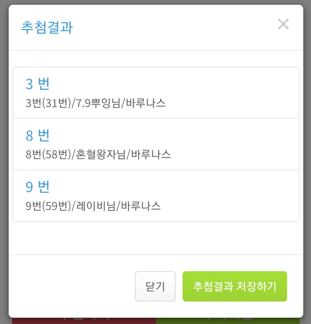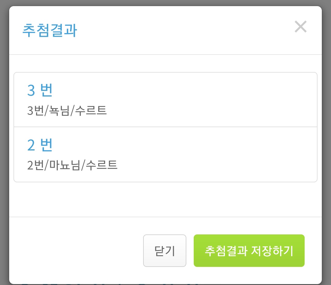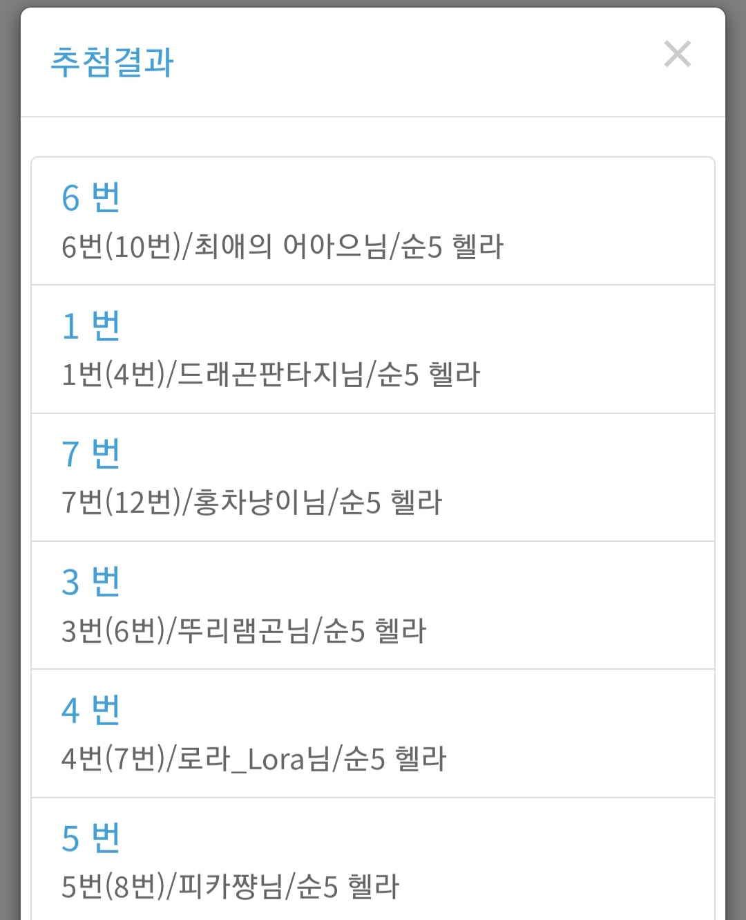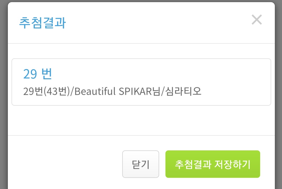 바로 2탄 추첨 결과부터 발표하도록 할게요!