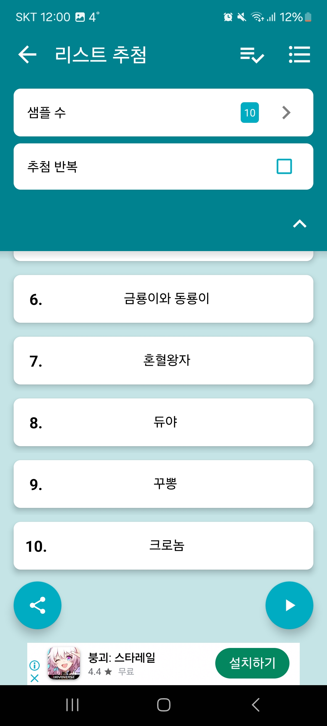 10등상 랜덤 혼종 4종 패키지! 당첨자는 크로놈님!