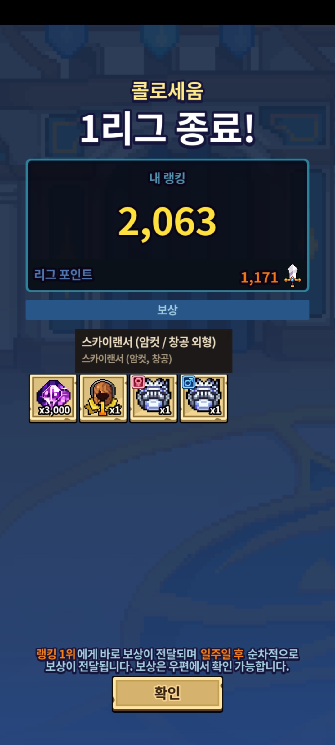 오늘 우편을 보니 순위보상이라고 창공외형 스랜이 들어와있네요..