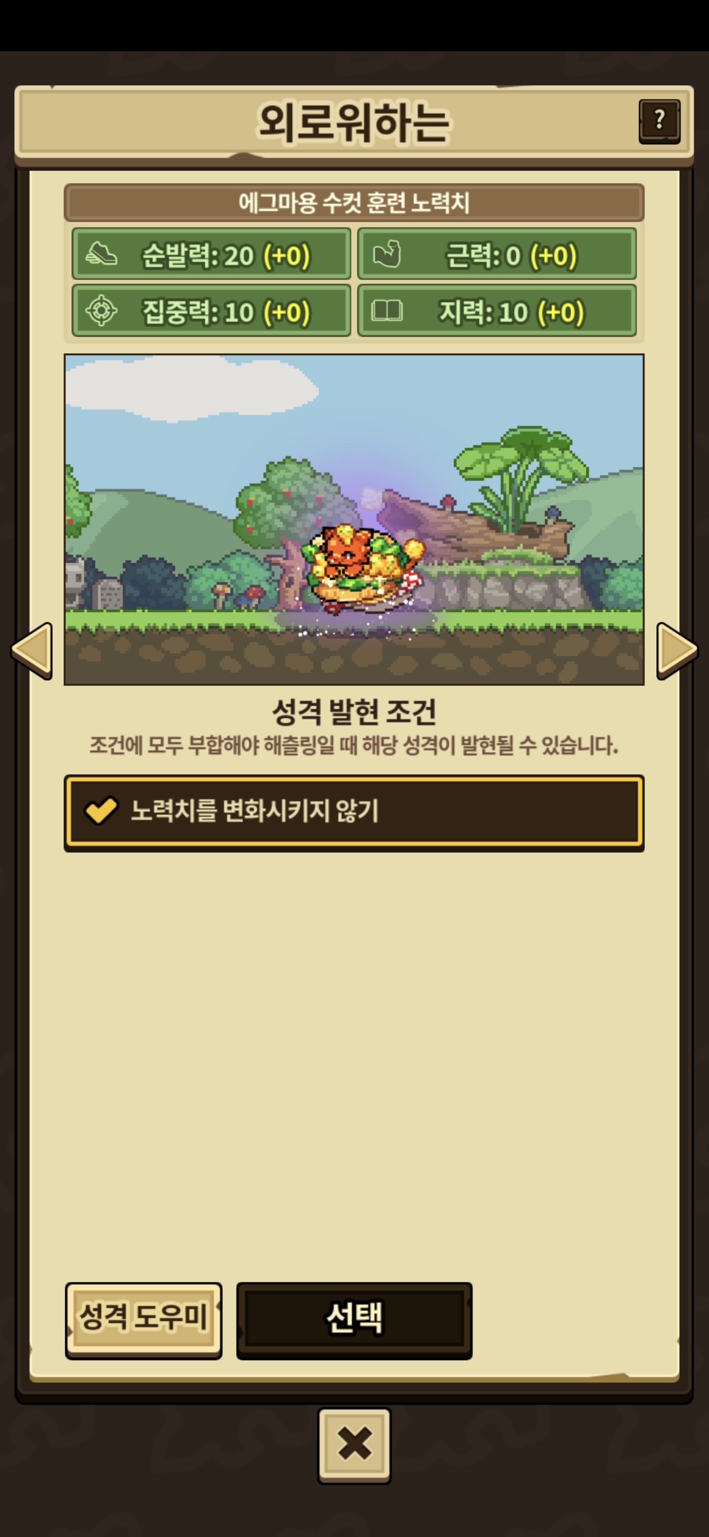 아.. 내향작이나 소극적인 같은 성격 할때 앞으로 외로움방지 못하게 생겼네요.. 전에는 훈련실패하면 외로움방지 할수있었는데 이젠 훈련실패해도 뜨네요..