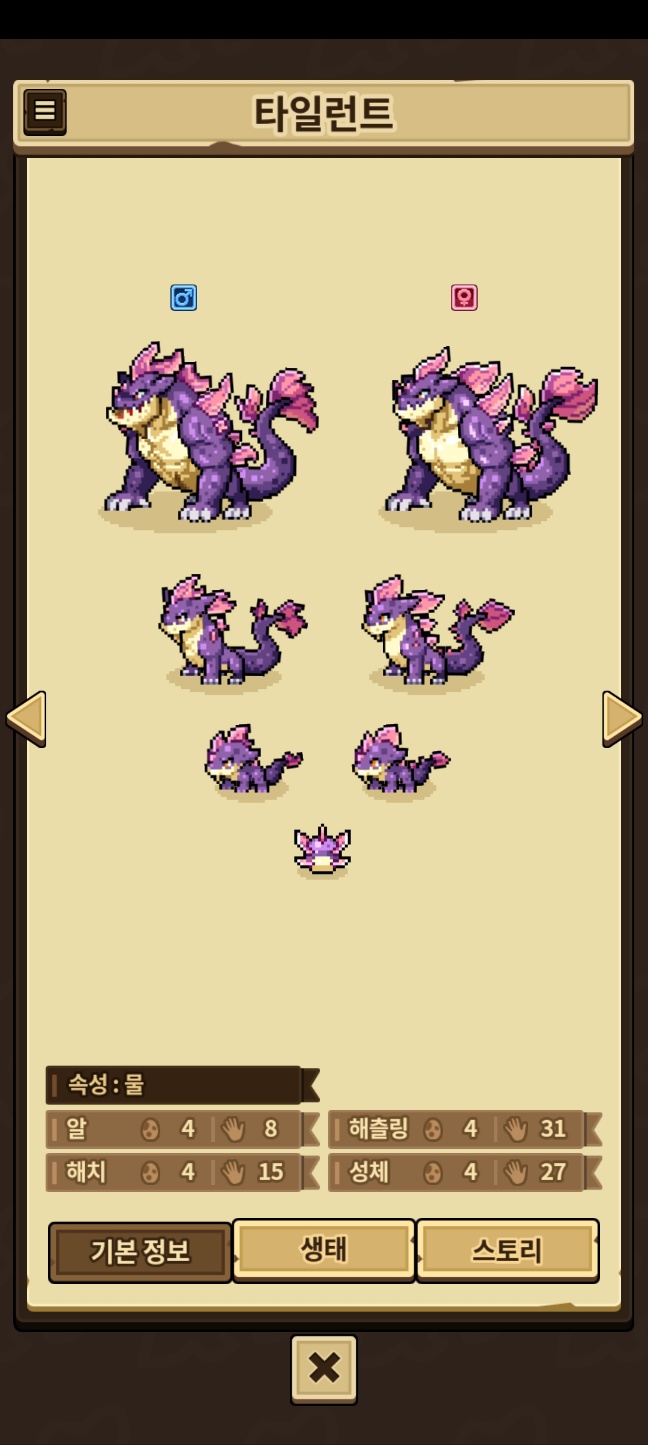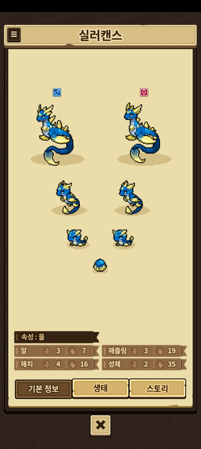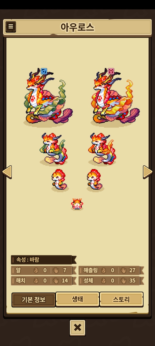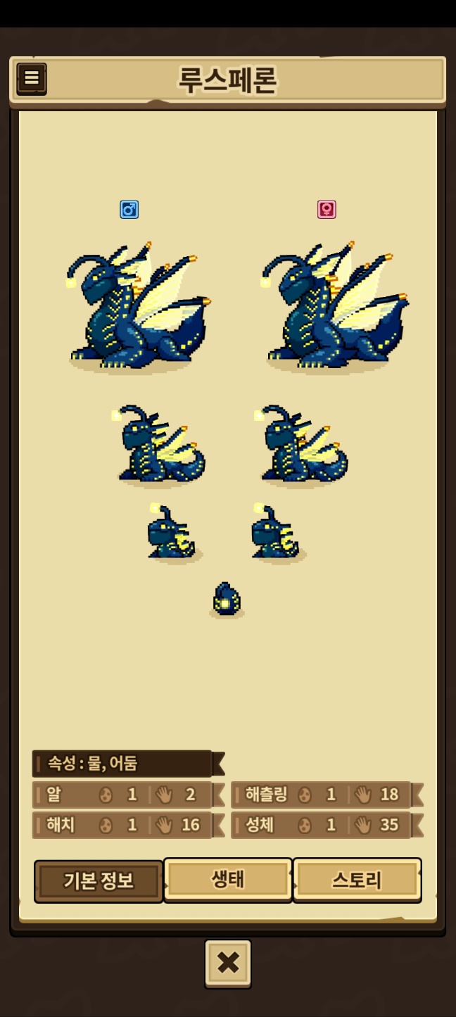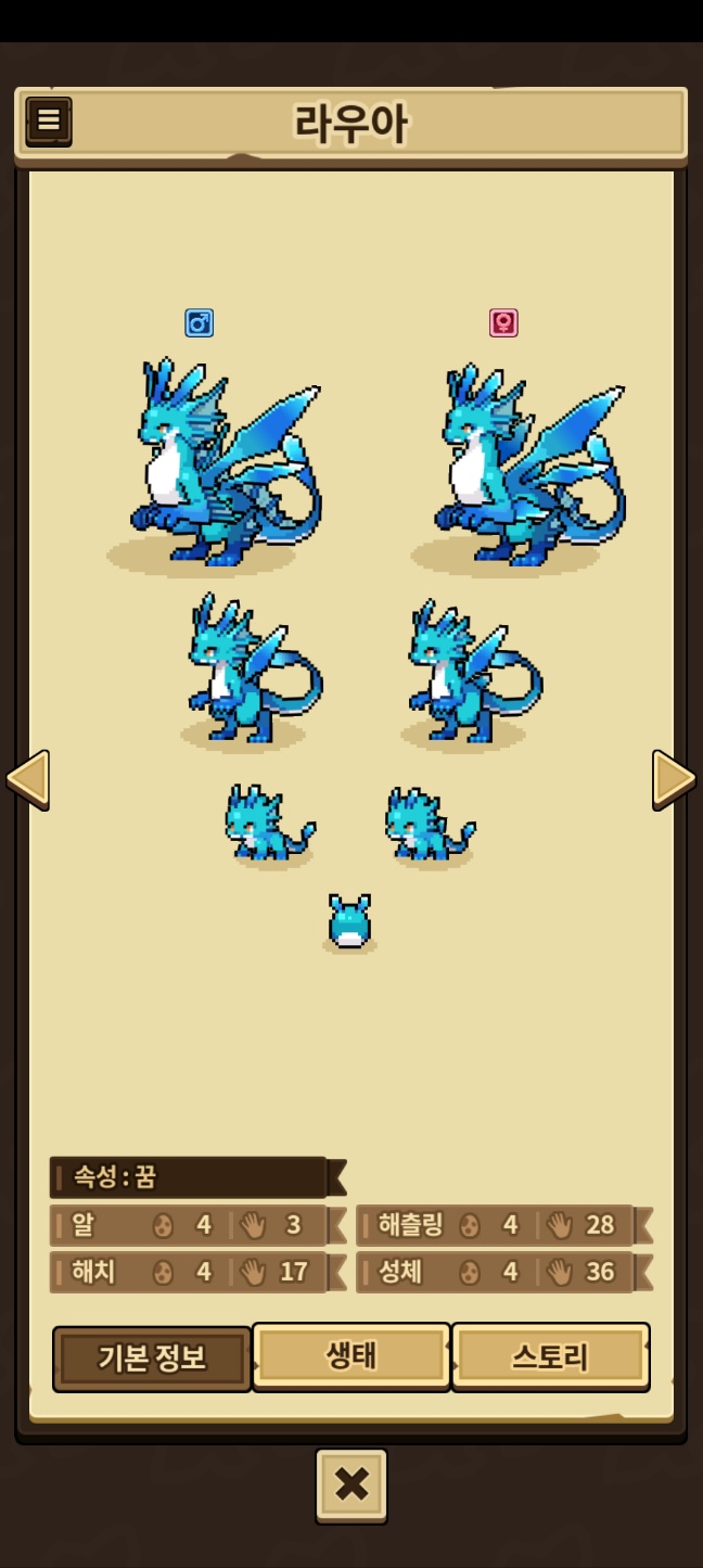 모든 외형을 채우지 못한 용들은 제외, 카코와 이달&방랑용,제작룡은 따로 올라갑니다.