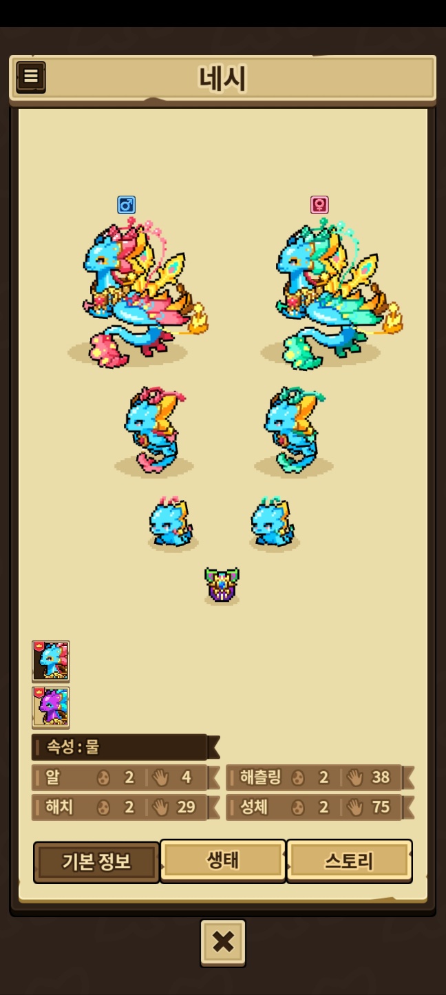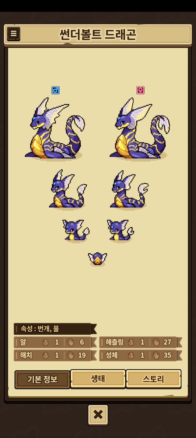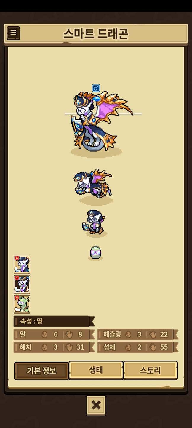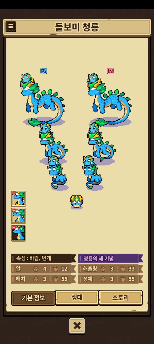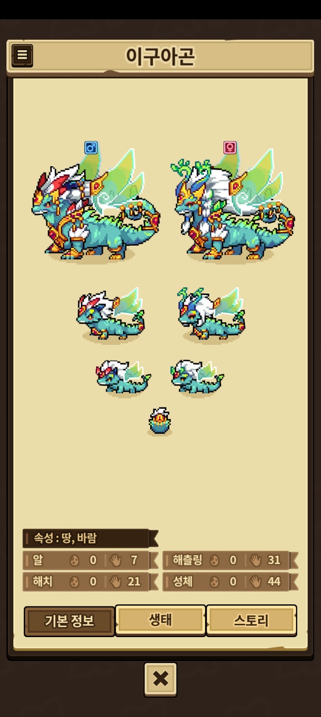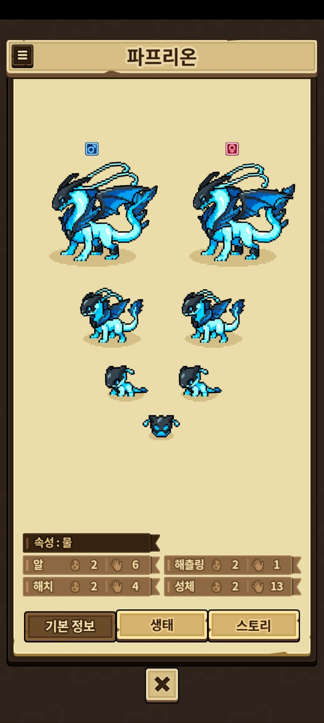 모든 외형을 채우지 못한 용들은 제외, 카코와 이달&방랑용,제작룡은 따로 올라갑니다.