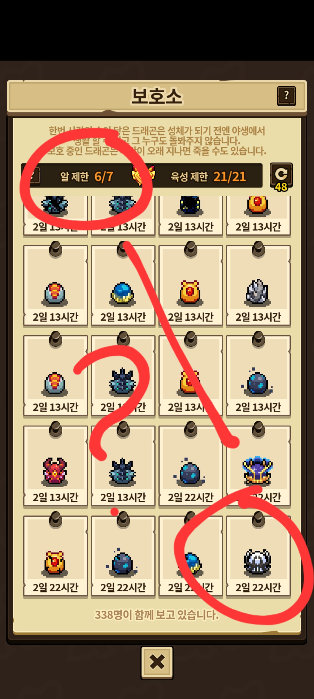 알칸 돌봄칸이 다 차면 희귀용들을 잔뜩 만날 수 있답니다!