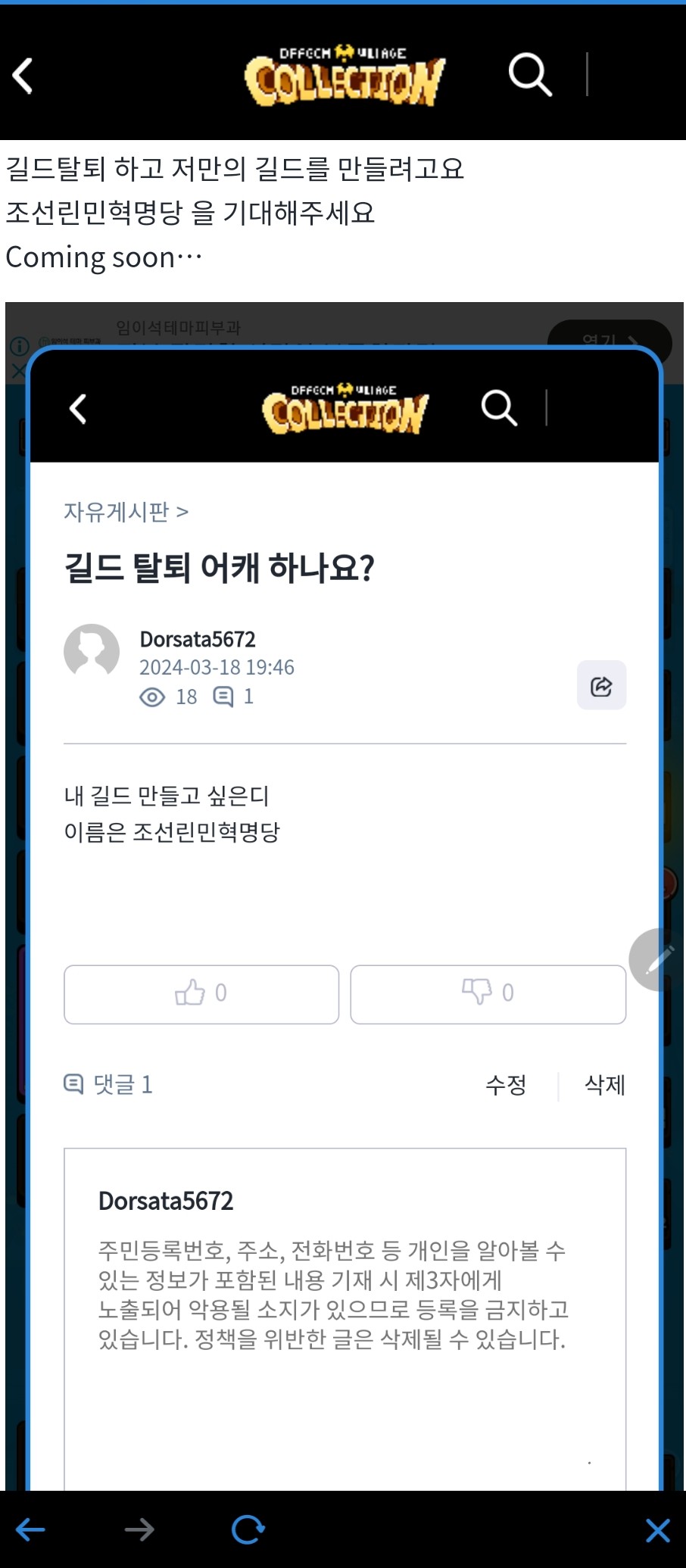 그리고 길드탈퇴 어캐 하냐는 글 삭제 하겠다 한거밖에 없는데