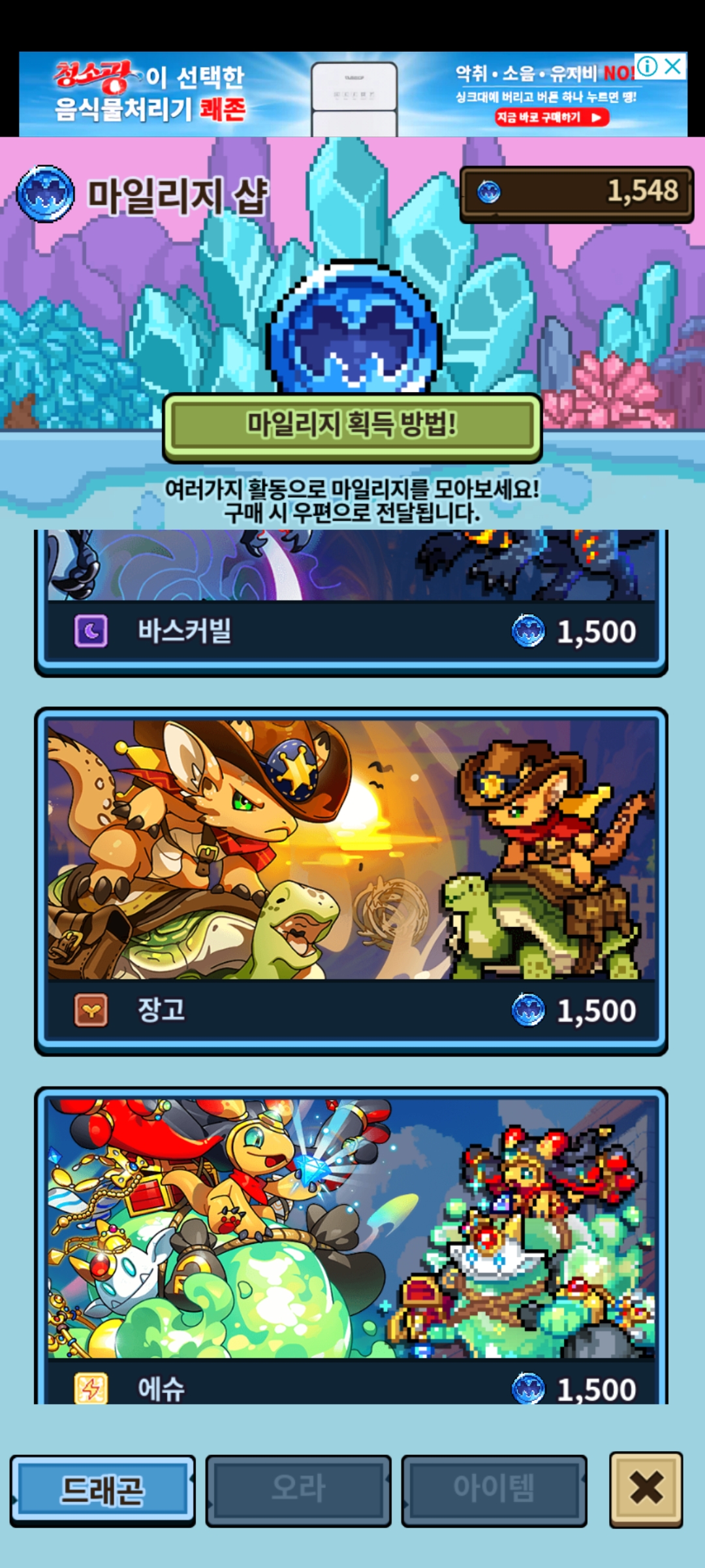 첫 마일리지룡인데… 뭐살까요?