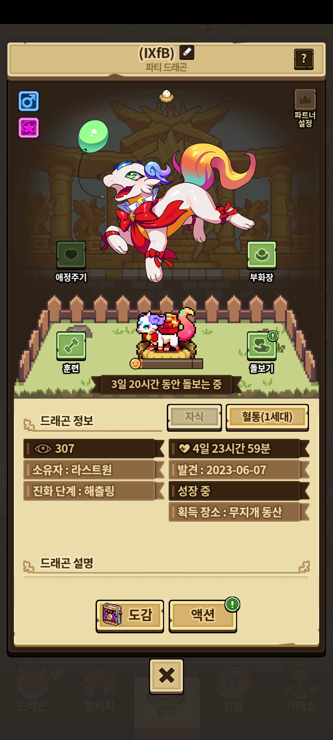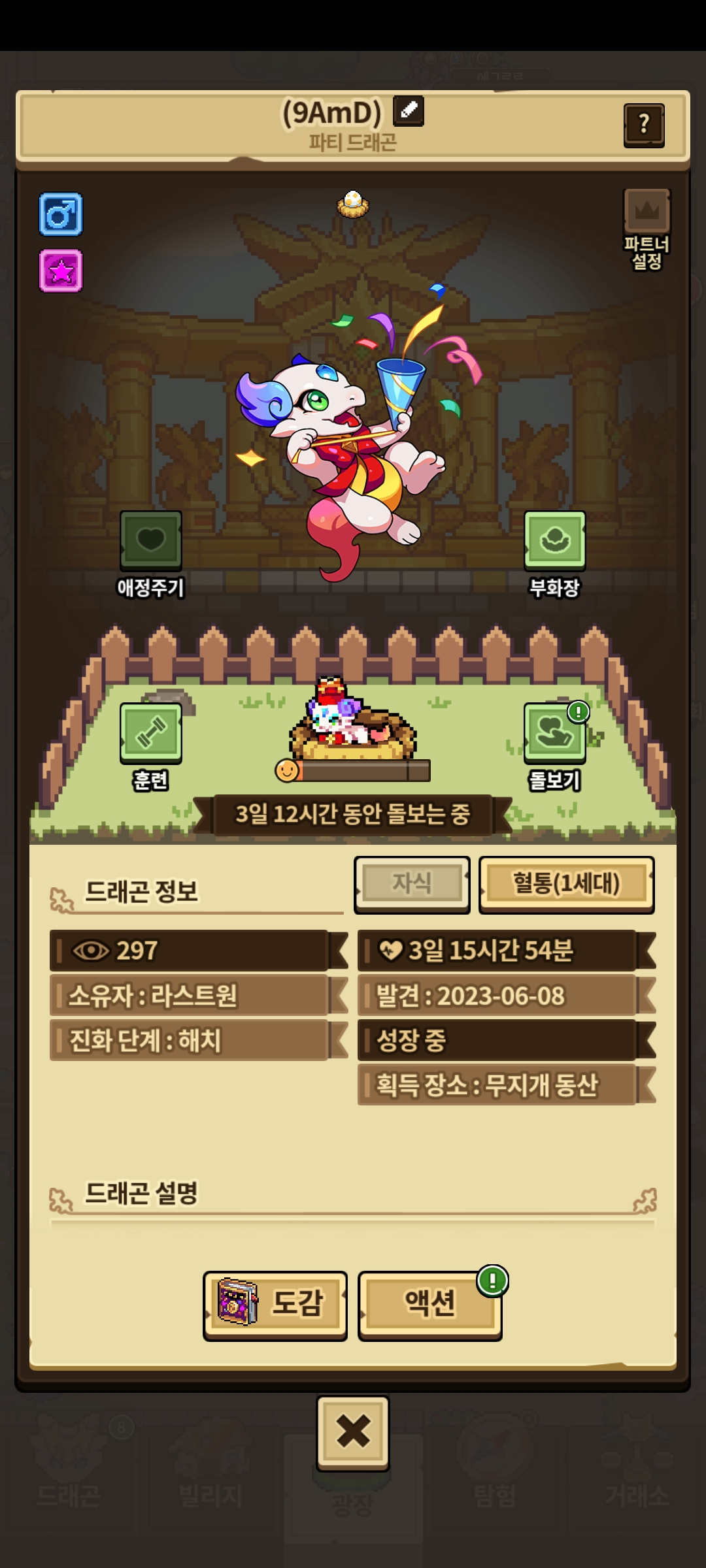 애정주기가 떠서 열심히 돌아다니고 300 넘기고 진화시켰다.