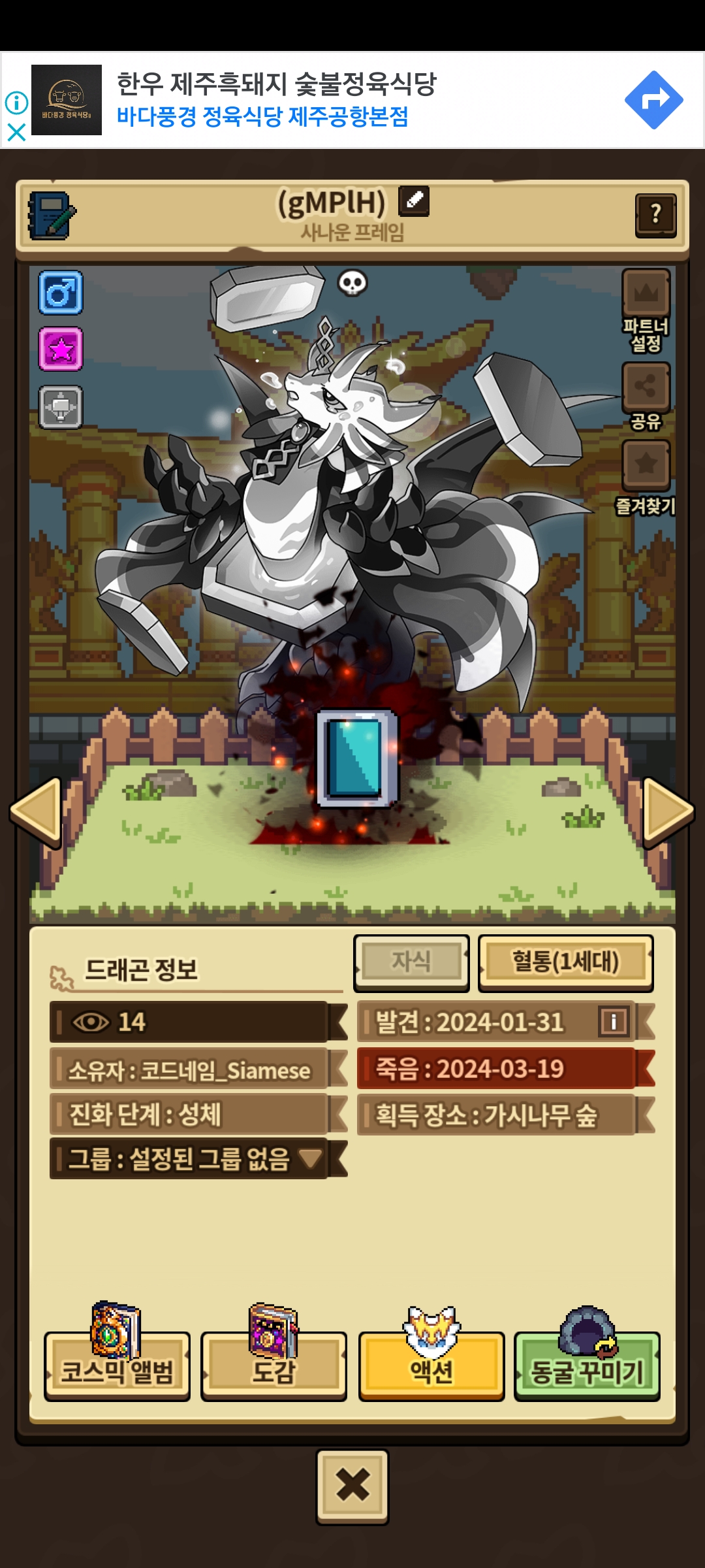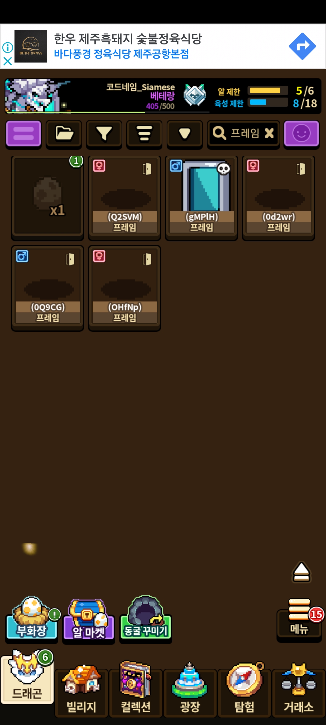 드디어 프레임 언데드 성공!! 이제…암컷…사나운 만하면되는데…. 5마리를 돌려서 한마리..건졌네요…8ㅁ8