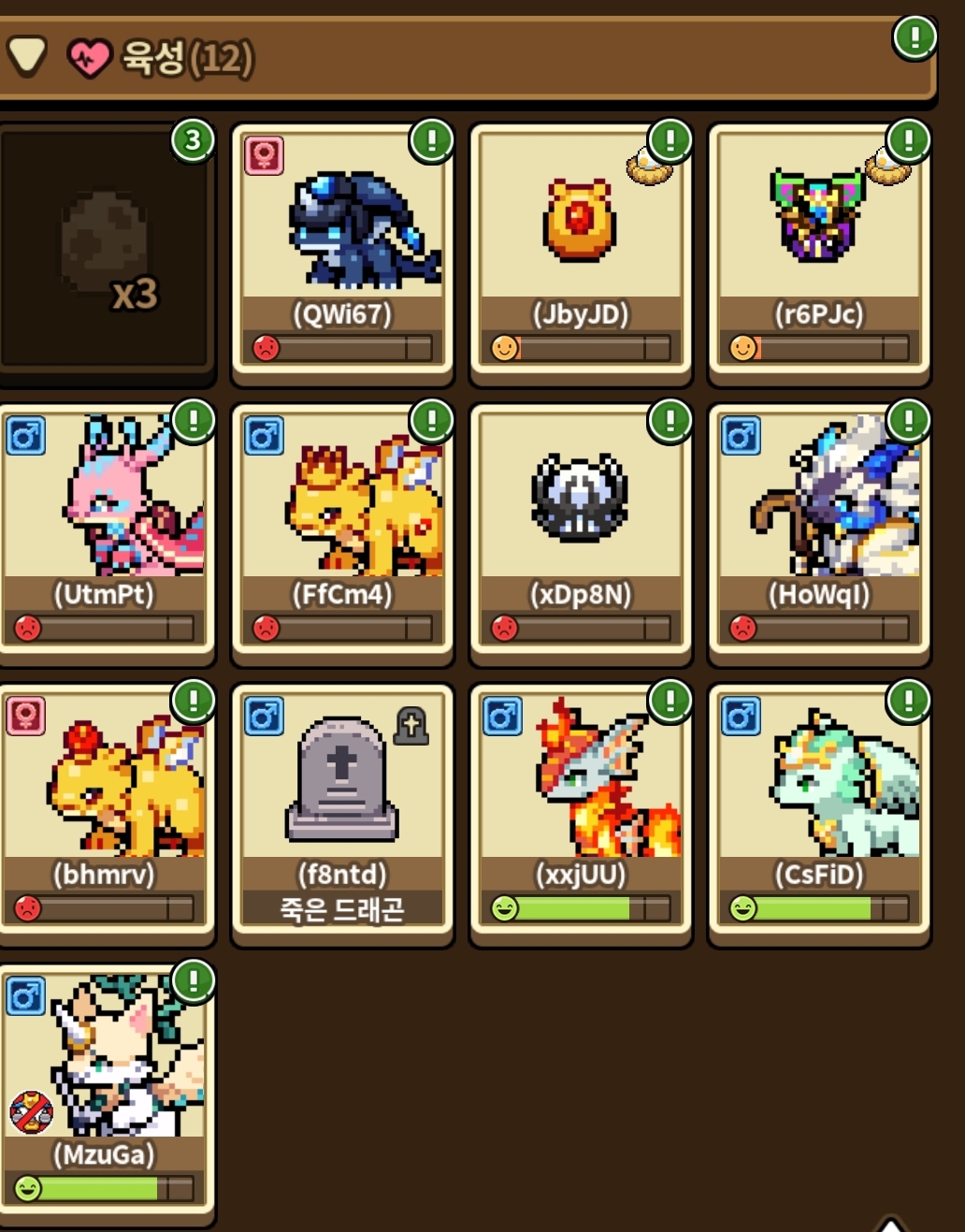 에메랄드 빼고 해츨 싹다 연속으로 다 실패했어용 ㅎㅎ