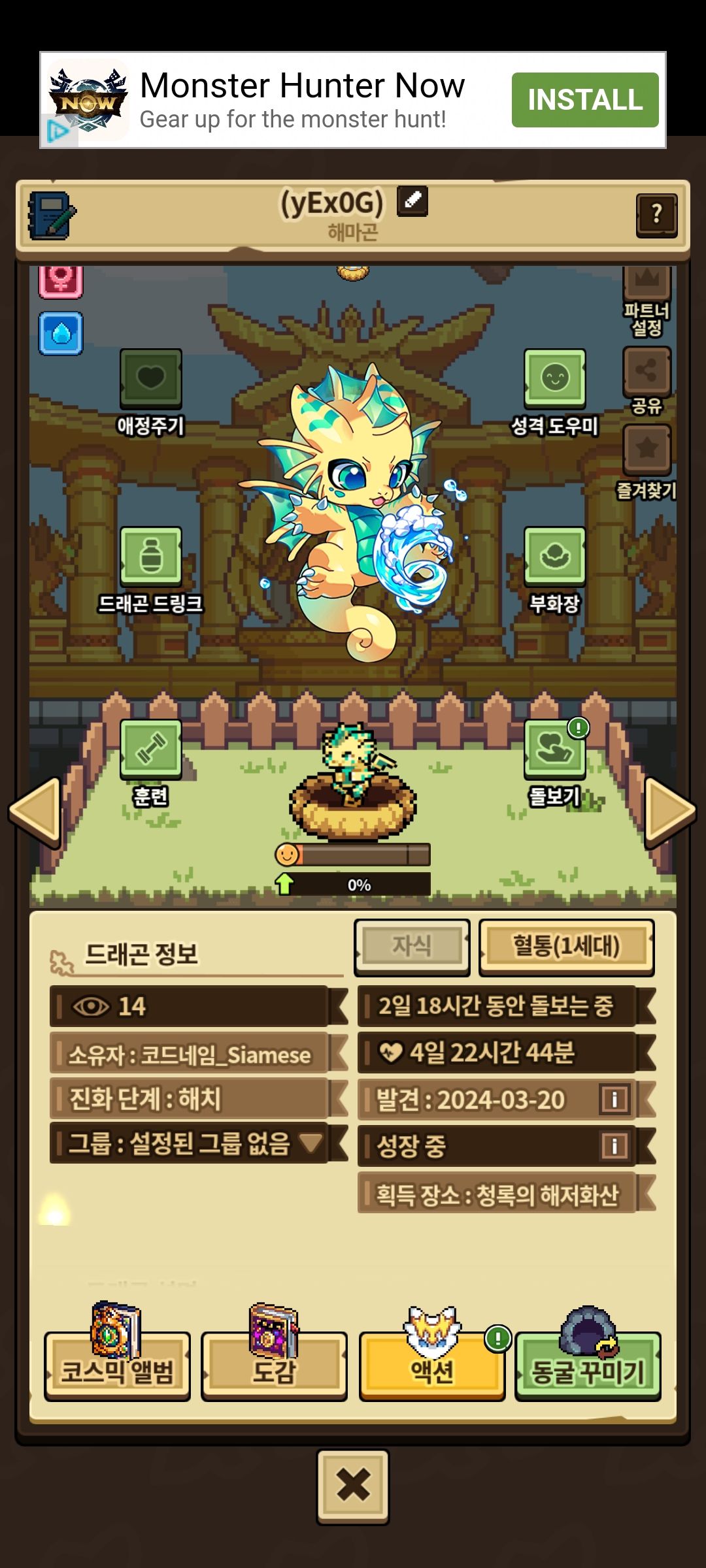 해마곤 해치 너무 귀여워요….유능작중인데… 이아이를 동결 해야할까요…?