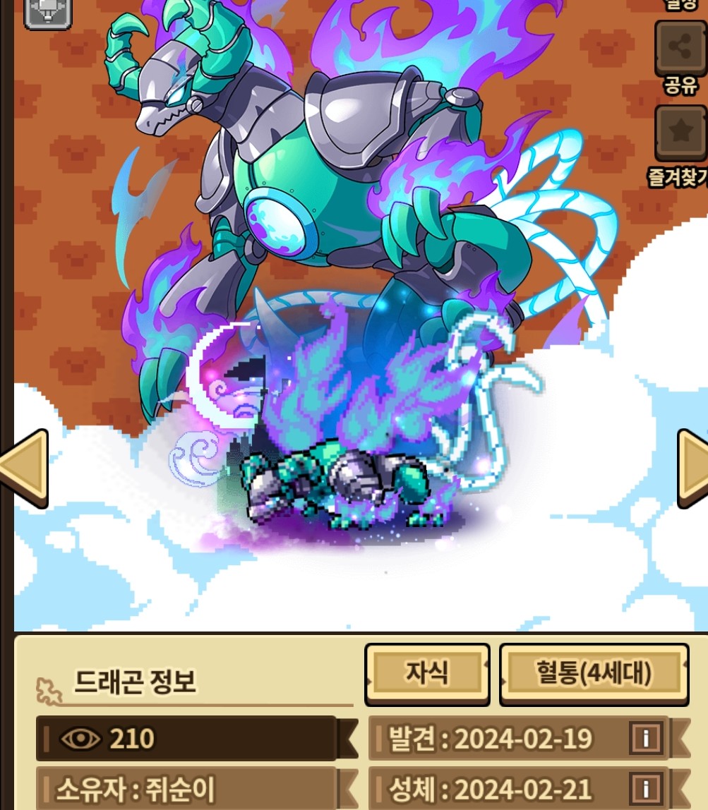 떠받들고 있고 입안에서 민트연보라 연기가 나오고