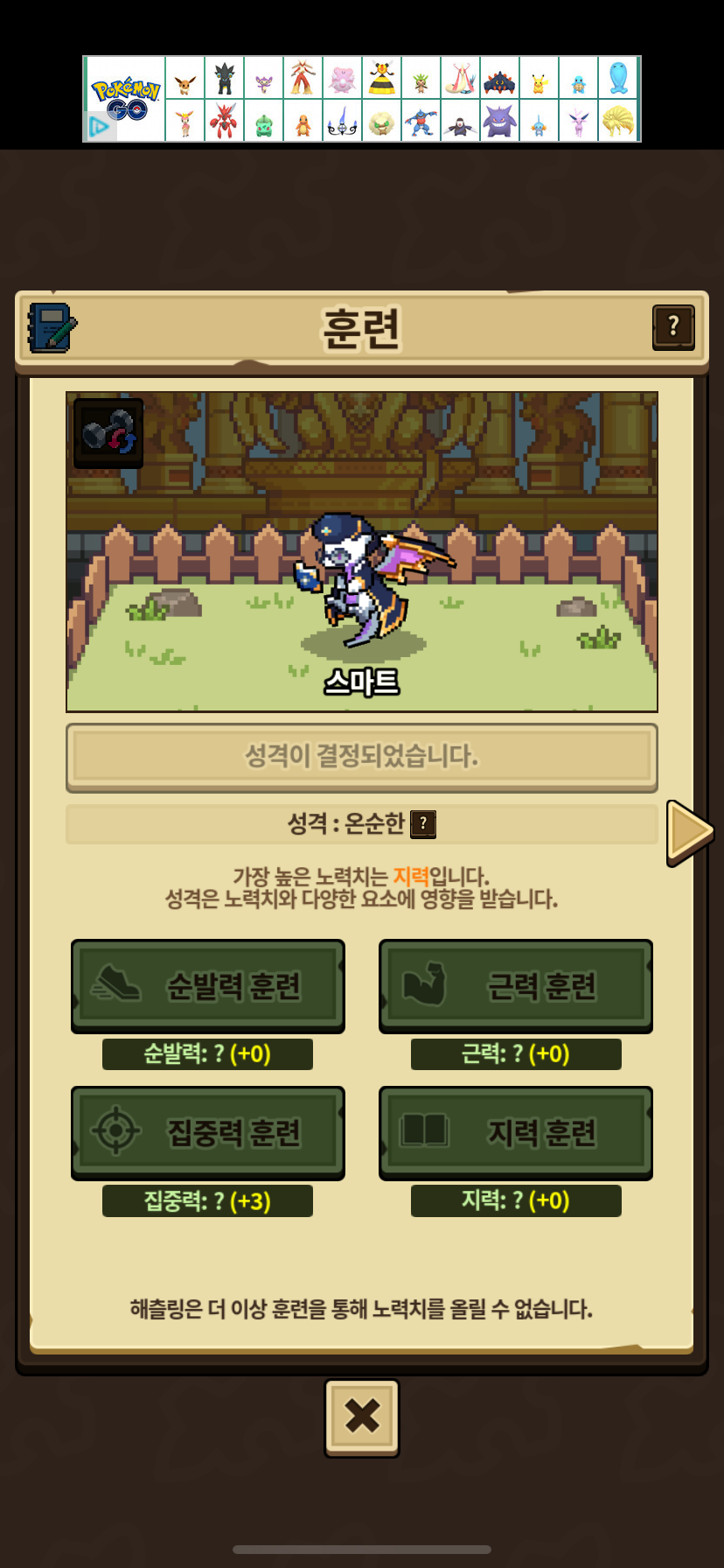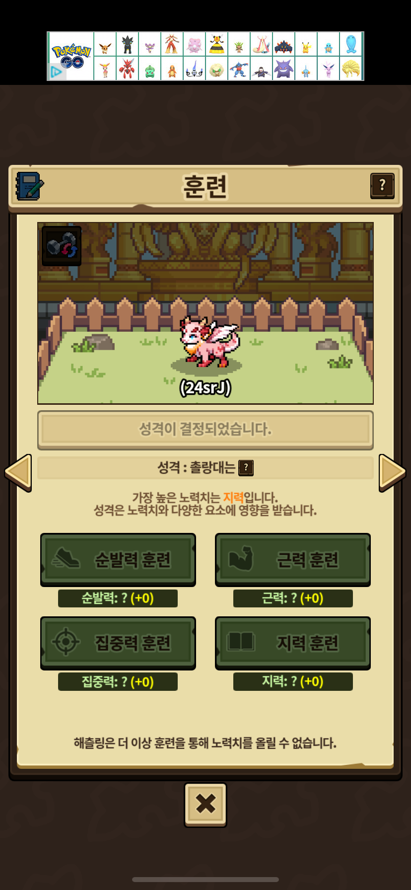 뉴비 성격작 하려고, 성격 도우미 보면서 열심히 해서.. 체크 떠서 드링크 먹여서 진화해보면 다 이렇게 되어있네요..