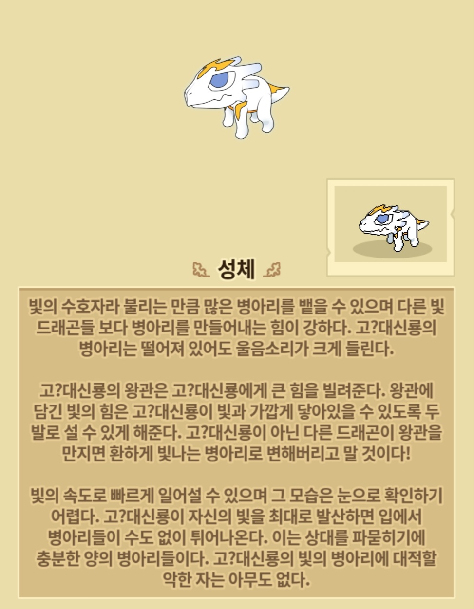 설명이 네글자가 전부인 드래곤이 있었다고 합니다.