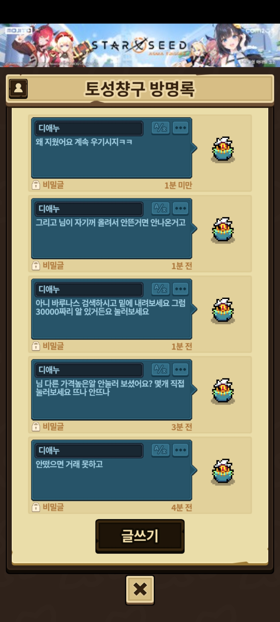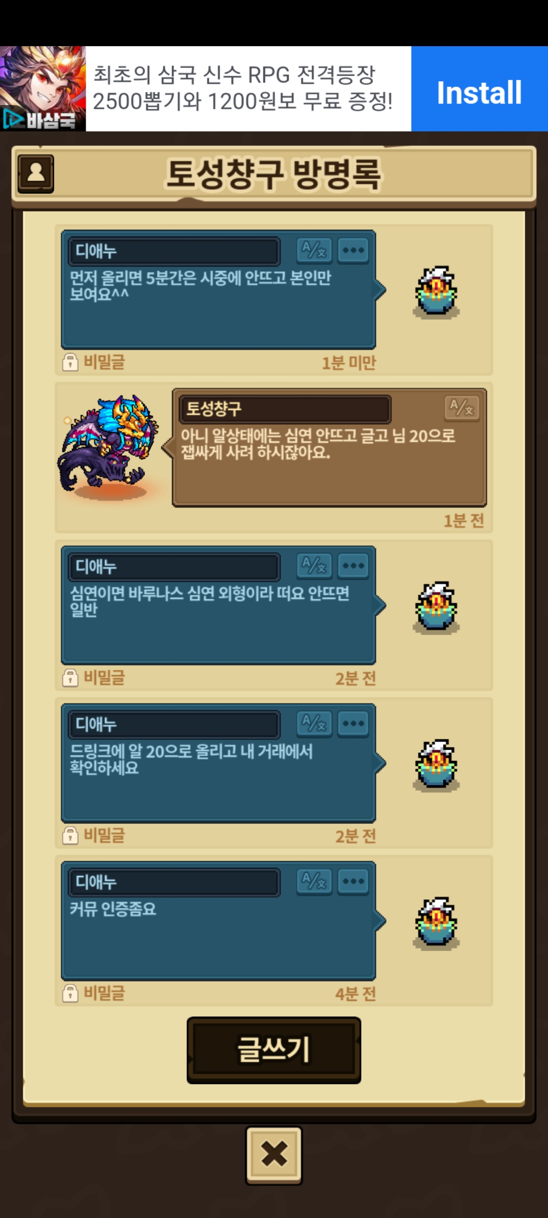 잡 심연크라로 다른 심연 구한다고 올렸는데 저사람이 잡 마리랑 바루를 제시했어요 근데 왜 거래 안하냐고 물어보길래 심연이냐 물어봤고 알려주는중에 나눈 대화입니다