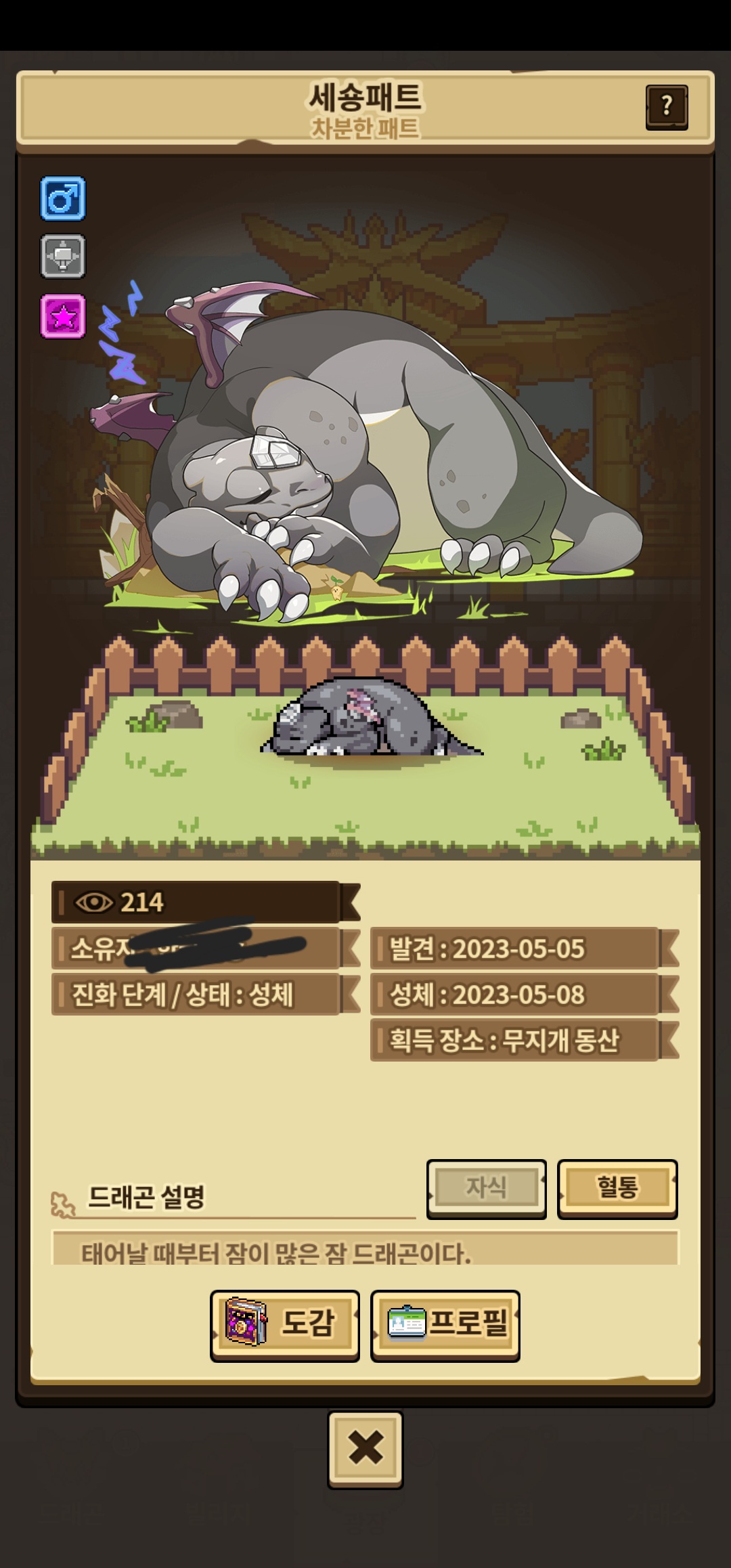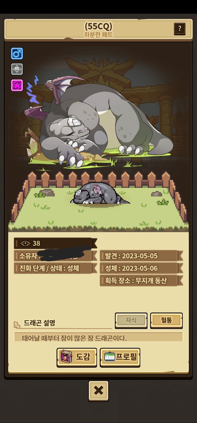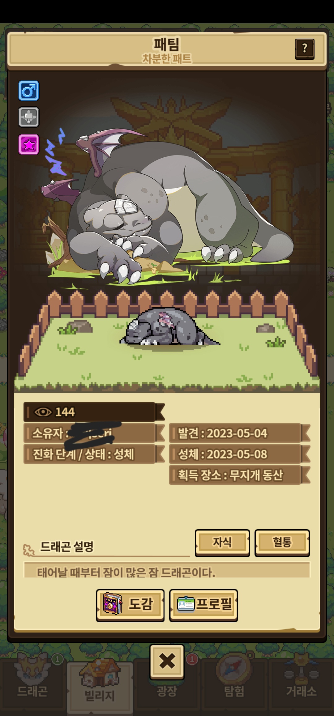 현재 패트 여아 성체가 자는 버전이 없어서 필드에 계신 오너분들이랑 대화해서 뭔가 조건이 있을 거라고 생각했는데 소름 돋는 공통점이 있었습니다.