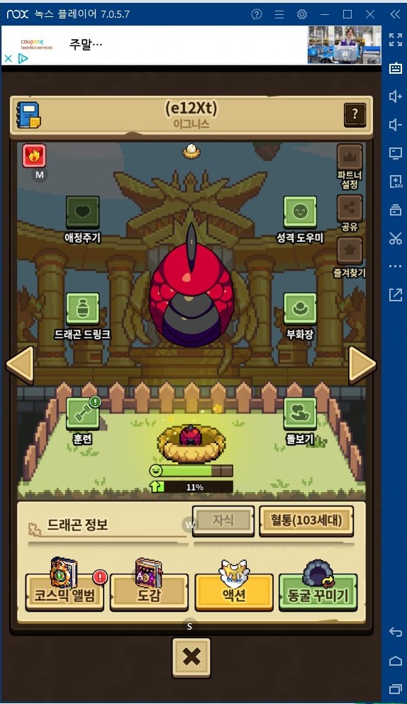 거들x이그 교배로 9% 확률로 이그니스 얻었으니 점점 더 희귀한 애랑 교배를…