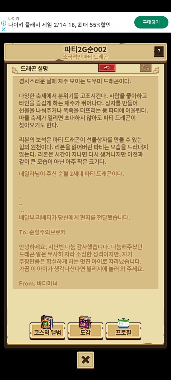 • 바다마녀/파티 받으시고 설명글에 감사하다는 글을 잔뜩 써주신 분. 가끔씩 그 글보면서 감동받았고, 그 덕분에 한동안 게임을 이어나갈 수 있었어요. 고마워요.