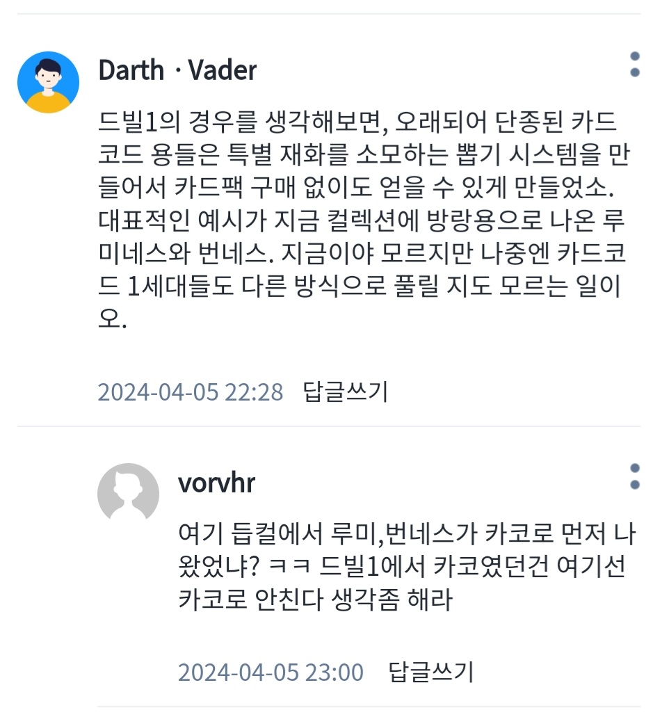 vorvhr 답글: 듭컬에 나온 루미네스, 번네스는 카코로 안 나왔다. 드빌1에서 카코였던건 듭컬에선 카코로 안 치는데 무슨 소리냐