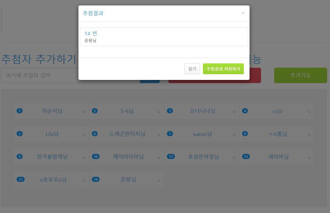 + 추첨 결과 +