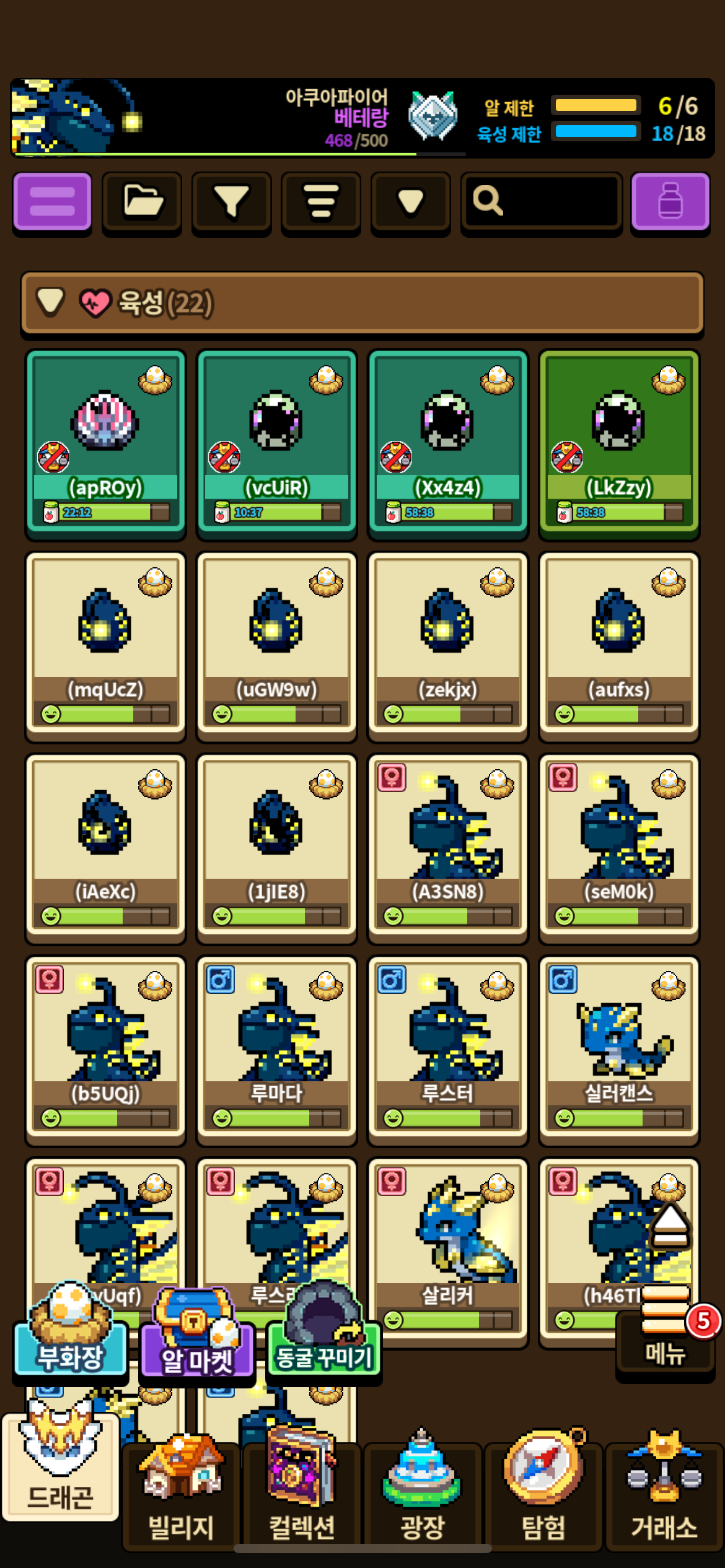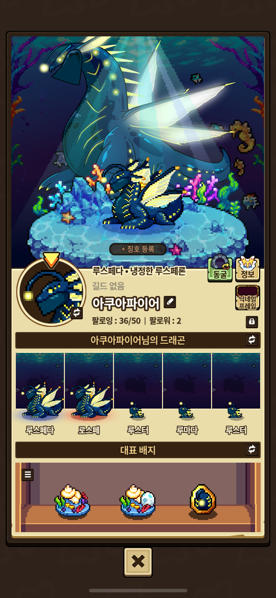 현재 육성 칸을 전부 심해어 루스페론으로 채웠네요