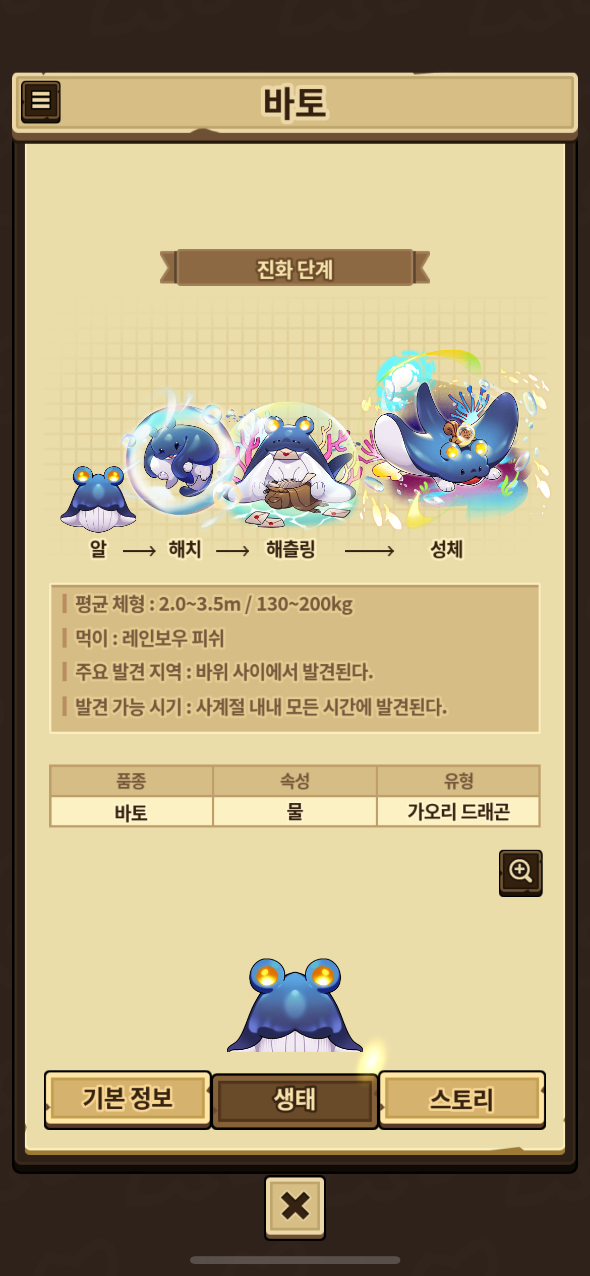 바토는 물고기 먹이를 삼은 드래곤과 교배 불가능이면서
