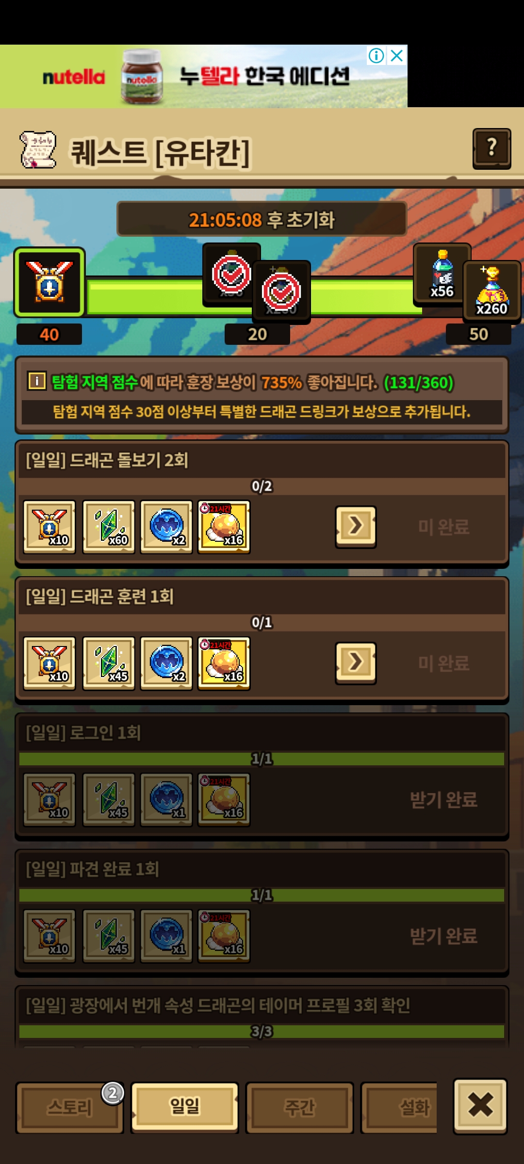 일일 퀘스트 초기화 전에 바부청룡 2마리랑 순진 달조각 1개 사고 여의주가 50개가 남았었는데